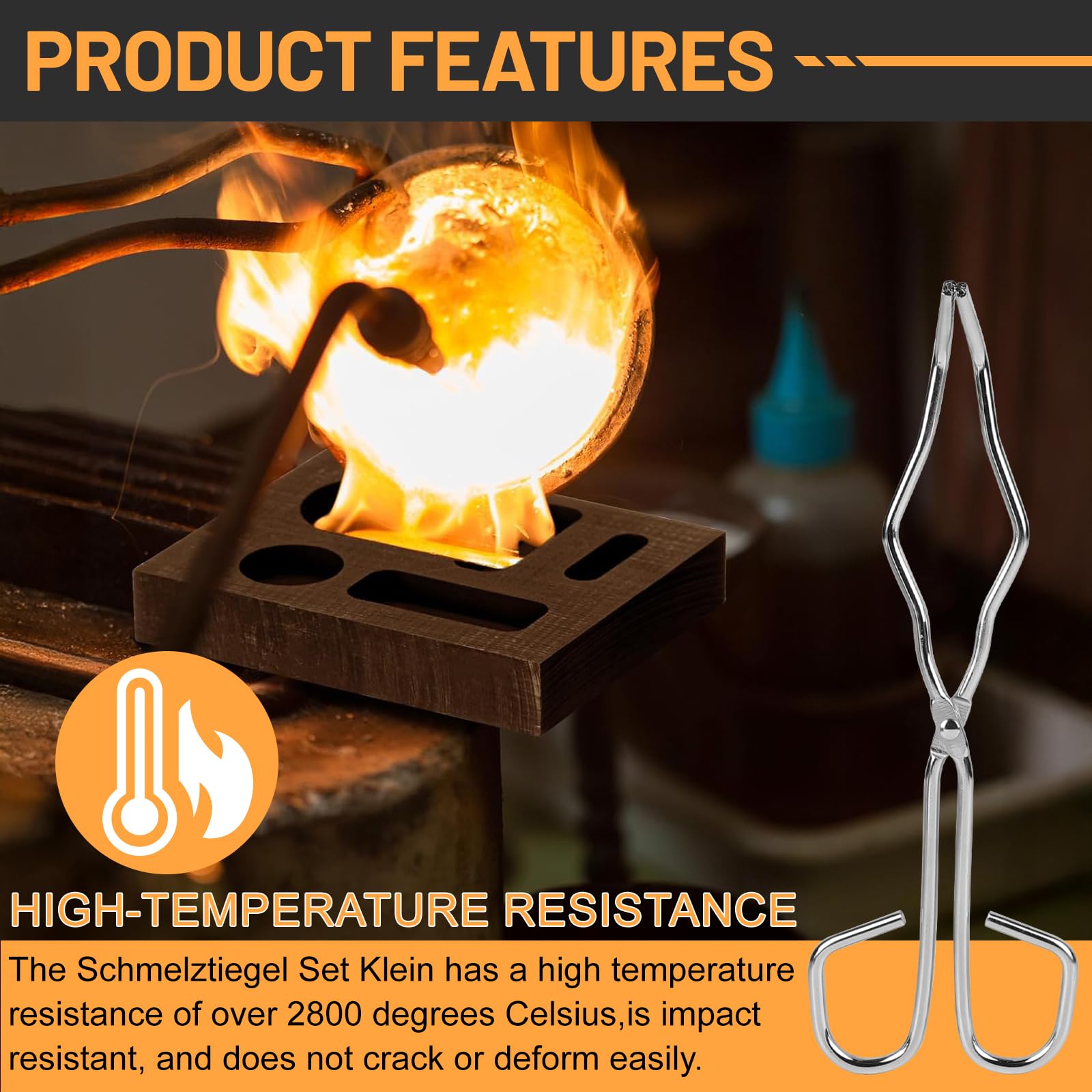 Ils constituent le choix idéal pour les travaux quotidiens de fusion et de coulée DIY. 【Entretien Facile】: Le produit est de conception simple et facile à nettoyer et à entretenir. 【Sécurité et Confort】: Les pinces en acier inoxydable augmentent non seulement la sécurité lors de la manipulation, mais facilitent également le transport de matériaux chauds ou fondus. 【Kit de Fusion d'Or】: Le kit de fusion d'or comprend un creuset en quartz, un moule en graphite, du graphite cylindrique et une pince en acier inoxydable. 6 Pièces Creuset en graphite de Haute Pureté, Utilisée pour l'or Lingot 【Haute Pureté et Durabilité】: Le kit de four de fusion est composé de graphite, de quartz et d'acier inoxydable de haute pureté et haute résistance, et se caractérise par une excellente durabilité et une longue durée de vie. Creuset en Quartz : Fabriqué en verre de quartz de haute pureté, résistant à des températures supérieures à 2800 °C, chimiquement stable, ne réagit pas facilement avec les métaux, prolonge la durée de vie. Kit de Creuset Fonderie, 4 Pièces Graphite Creuset Kit, Haute Pureté Graphite Creuset Tong Bol Combo Lingotière ensemble, Creuset Pince Cuvette Moule... Il convient à la fabrication de bijoux, au traitement industriel des métaux et à d'autres domaines afin de répondre à vos exigences élevées en matière de précision et de fiabilité des outils. Fonctions Principales : Moule en Graphite : Matériau en graphite haute densité, conduction thermique uniforme, démoulage facile, réutilisable, adapté au moulage de produits métalliques de forme complexe tels que bagues, pendentifs et pièces industrielles. Après chaque utilisation, il suffit de le nettoyer selon la méthode de nettoyage appropriée pour le maintenir dans un état optimal. Kit Fusion Métaux LALAGO 4 Pièces Kit De Fusion De Graphite, Haute Pureté Forge A Gaz De Forgeron VEVOR Four de Fusion Four à Four de Fonderie Automatique Numérique 1 kg... L'utilisation de graphite et de quartz contribue à augmenter l'efficacité et la qualité de la fusion.