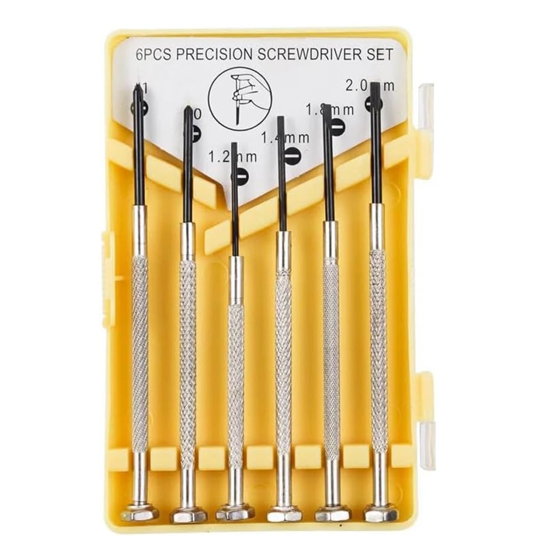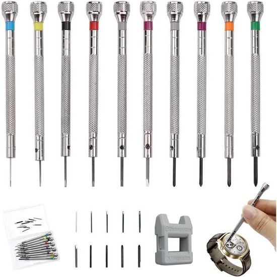 Tournevis Précision Réparation Tournevis De Précision Kit De Réparation De L'outil Pour L'iPhone 4 4S Tournevis Lunettes MÉCANIQUE DE PRÉCISION Tournevis Lot 6-tlg. Set Montre Réparation Mini tournevis - le petit tournevis convient à diverses tâches, telles que la réparation d'horloge, de montre, de lunettes, d'appareils électroniques, etc... Les embouts rotatifs augmentent la vitesse et l'efficacité. Un must have dans votre boîte à outils. Ils sont très pratiques à garder à la maison. 【Bonne Conception de Prise en Main】 Les espaces sont étroitement combinés pendant l'utilisation et sont confortables. 【 6 Tailles Différentes 】 2 tailles croisées (#0, #1) ; 4 tailles de tête plate (1,2 mm, 1,4 mm, 1,6 mm, 2,0 mm) ; le mini jeu de tournevis est idéal pour la réparation de montres, appareils électroniques, bijoux, lunettes. Manche en oxyde durci Un must dans votre boîte à outils. 【Service Satisfaisant】Si vous avez des questions sur nos produits, n'hésitez pas à nous contacter. Il contient 2 tournevis plats (0.8mm/1.2mm), 1 Phillips (1.4mm), 1 multi-tête (3-en-1), 1 pince à épiler et 1 outil pour bracelets de montre. Les tournevis sont...