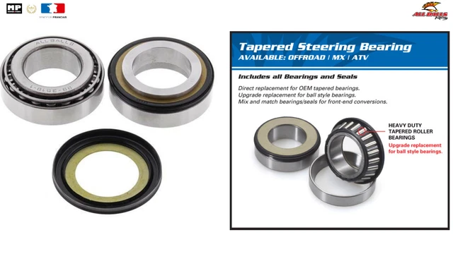 Pièce Direction YFM350 400 450 Kit De Reconstruction De Joint De Roulement De Tige De Direction Pour Yamaha Banshee Big Bear Grizzly Raptor Warrior Kodiak Wolverine YFZ450 Bruin Timberwolf 660 350 400 450 700 600 550 Pièces Détachées Yamaha Grizzly Les kits roulement ALL BALLS pour colonne de direction sont dotés de rouleaux coniques, ce qui permet à la pièce de supporter des charges plus élevées, tout en conservant une précision maximale de fonctionnement Roulement de Colonne de Direction Kymco Si vous avez des problèmes avec le produit dans un an, veuillez nous contacter pour obtenir de l'aide. Kit de demi paliers et roulement de colonne de direction neuf adaptable pour quad 250cc, 350cc, 450cc, 660cc, 700cc Yamaha Big Bear, Banshee, Warrior, YFM... Nous vous répondrons dans les 24 heures. 【Contenu de la livraison】: roulement x 1, joint d'huile supérieur x 1, joint d'huile inférieur x 1, écrou de support de roulement x 1, outil d'écrou x 1, manchon x 1 (certains modèles ne sont pas nécessaires) 【Service après-vente】: Achetez en toute confiance. 【Véhicule compatible】: convient pour Yama-ha ATV ▶ Banshee 350 YFZ350 1987-2006 ▶ Big Bear 350 YFM350 1987-1999 ▶ Big Bear 400 YFM400 2000-2012 ▶ Bruin 350 YFM350 2004-2006 ▶ Grizzly 350 YFM350 2007-2014 ▶ Grizzly 400 YFM400 2007-2008 ▶ Grizzly 450 YFM450 2007-2014 version extérieure EPS ▶ Grizzly 550 YFM550 2013-2014 sauf version EPS ▶ Grizzly 600 YFM600 1998-2001 ▶ Grizzly 660 YFM660 2002-2008 ▶ Grizzly 700 YFM700 2013-2017 Sauf Version EPS