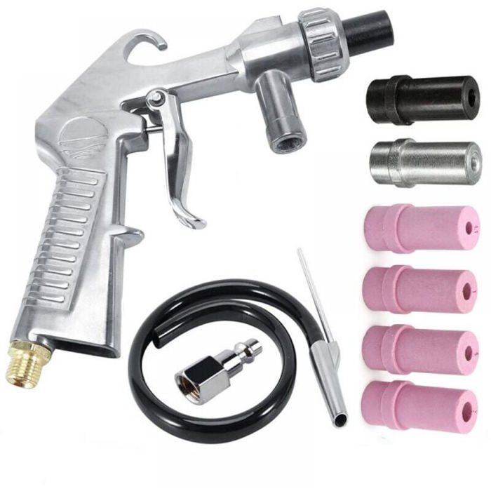 Dimensions de la trémie (l x H) : 24 x 53 cm. 1 clé hexagonale de 3 mm., Remarque : 1., La couleur de l'article peut varier de celle de la photo, en fonction des paramètres d'affichage et de luminosité de votre ordinateur., 2., Les mesures étant prises à la main, les tailles indiquées peuvent varier légèrement. et attrayant : le pistolet est fabriqué en alliage d'aluminium résistant à l'usure et antirouille, longévité. Taille de l'entrée d'air du pistolet Blaster : filetage mâle 1/4-18NPT Capacité de la trémie : 22,7 kg. Pistolet de sablage pneumatique Silverline | Outil pneumatique | FR Longueur du tuyau en PVC : 4,5 m. Taille de la buse du pistolet : 5 mm. Ensemble d'outils] Équipé d'un pistolet de sablage, d'un tuyau de 15 pieds et d'une trémie pouvant contenir 50 livres d'abrasif. [Large application... Design portable : ce kit de grenaillage portable est pour les opérations de sablage de petite et moyenne taille. Consommation d'air moyenne : 3,5 pi³/min à 50 psi., Pression maximale : 120 psi. Élimination efficace de la rouille : connectez simplement le kit de sableuse portable à compresseur d'air de 1 ou plus, et retirez sans effort la rouille, la peinture, le calcaire, et plus . Aerogommage Bois Kit De Sablage Pneumatique Portable Pistolet De Sablage - Shipenophy - Blanc - Métal + Verre équipement Atelier Bricolage Pistolet Sablage Air Comprimé, Pistolet De Sablage En Aluminium, Kit... Son design poli ajoute une belle touche.