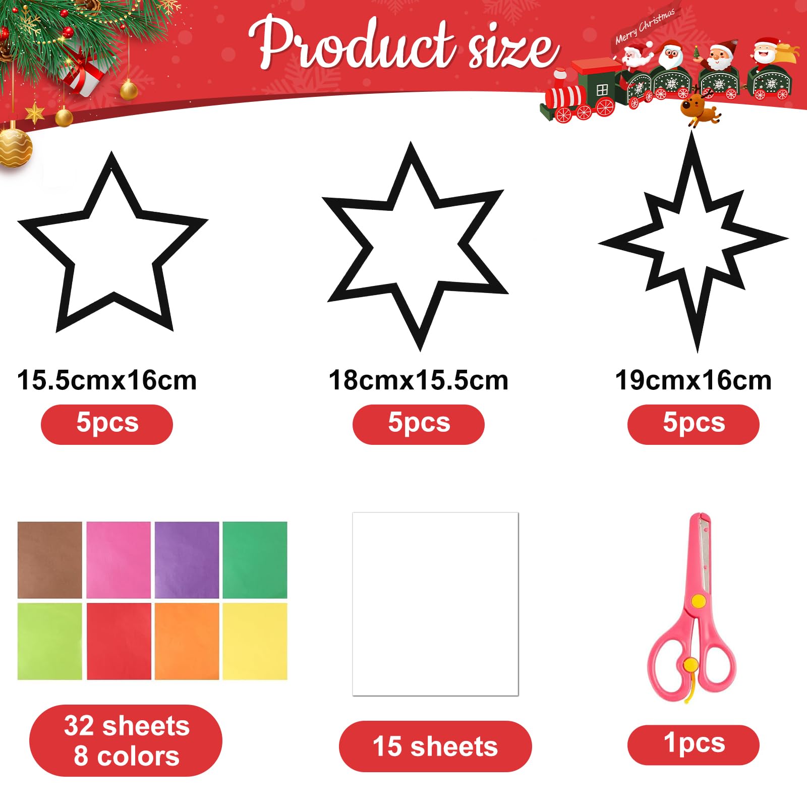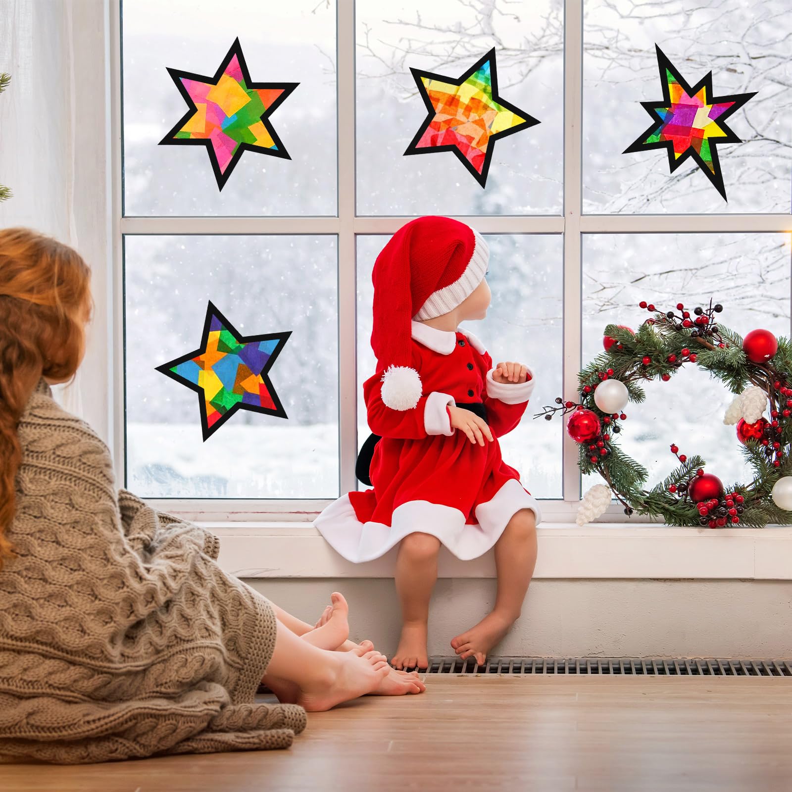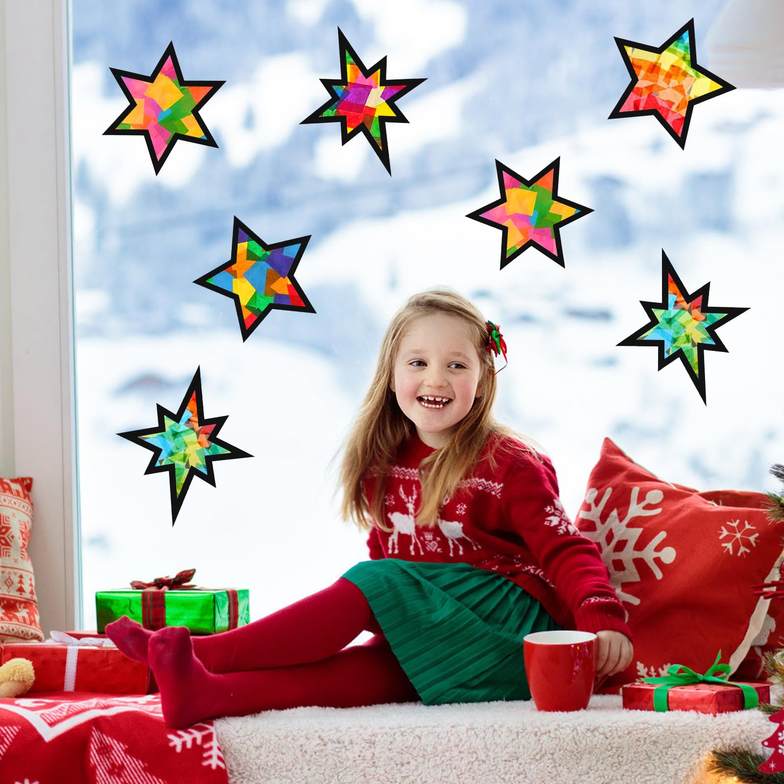 L'application est simple et amusante : placez les feuilles de papier colorées sous les pochoirs, découpez les formes et collez-les sur les films autocollants. Décoration Murale Intérieur Extérieur Noël Kit Autocollants Noël 90 Pièces - 34 Flocons + 56 étoiles | Décoration Fenêtre, Mur, Intérieur/extérieur Déco Murale Noël Adhésif Facile à utiliser : combinez librement différentes couleurs et formes de papier décoratif pour créer des autocollants de fenêtre d'hiver uniques. Kit Deco Noel Kit Decoration Noel Sapin Bricolage De Noel DONQL 10 Kit Bricolage Naturel Pomme De Pin Tonneau En Bois Etoile Fenetre Noel Il contient 12 pochoirs noirs avec 5 motifs différents de maison de Noël (2 de chaque style) ainsi que 2 arbres de Noël, 30 petites étoiles, 14 feuilles autocollantes transparentes et 32 feuilles de papier coloré. Grâce au papier et au plastique de haute qualité, les décorations sont faciles à appliquer et à retirer sans laisser de traces. Modèle mage de fenêtre crae mage de fenêtre marqueurs crayeux... Large application : parfait pour coller ou accrocher - convient aux fenêtres, miroirs, portes, portes en verre, vitrines, carreaux, cafés ou autres surfaces lisses Les enfants et les adultes peuvent laisser libre cours à leur imagination et réaliser des idées de décoration uniques. Rien de mieux qu’un kit créatif comprenant tout le matériel nécessaire pour réaliser une nouvelle décoration comme une suspension pour votre déco de Noël, une étoile ou un sapin de Noël original Cet ensemble est parfait pour les familles qui veulent bricoler ensemble et profiter de la période de Noël. Idéal pour changer vos fenêtres ou portes à volonté. Contenu de l'emballage : 12 pochoirs noirs (5 maisons de Noël différentes, 2 pièces/style et 2 pièces d'arbre de Noël) + 30 petites étoiles + 14 feuilles autocollantes transparentes + 32 papiers de couleur - Kit de bricolage riche pour décorations de Noël créatives Description du produit Ce kit de bricolage offre tout ce dont vous avez besoin pour une décoration de Noël créative. Belle décoration d'hiver : collez les images de fenêtre faites maison sur vos fenêtres pour créer un charmant effet de vitrail au soleil et donner à votre maison une atmosphère chaleureuse et festive