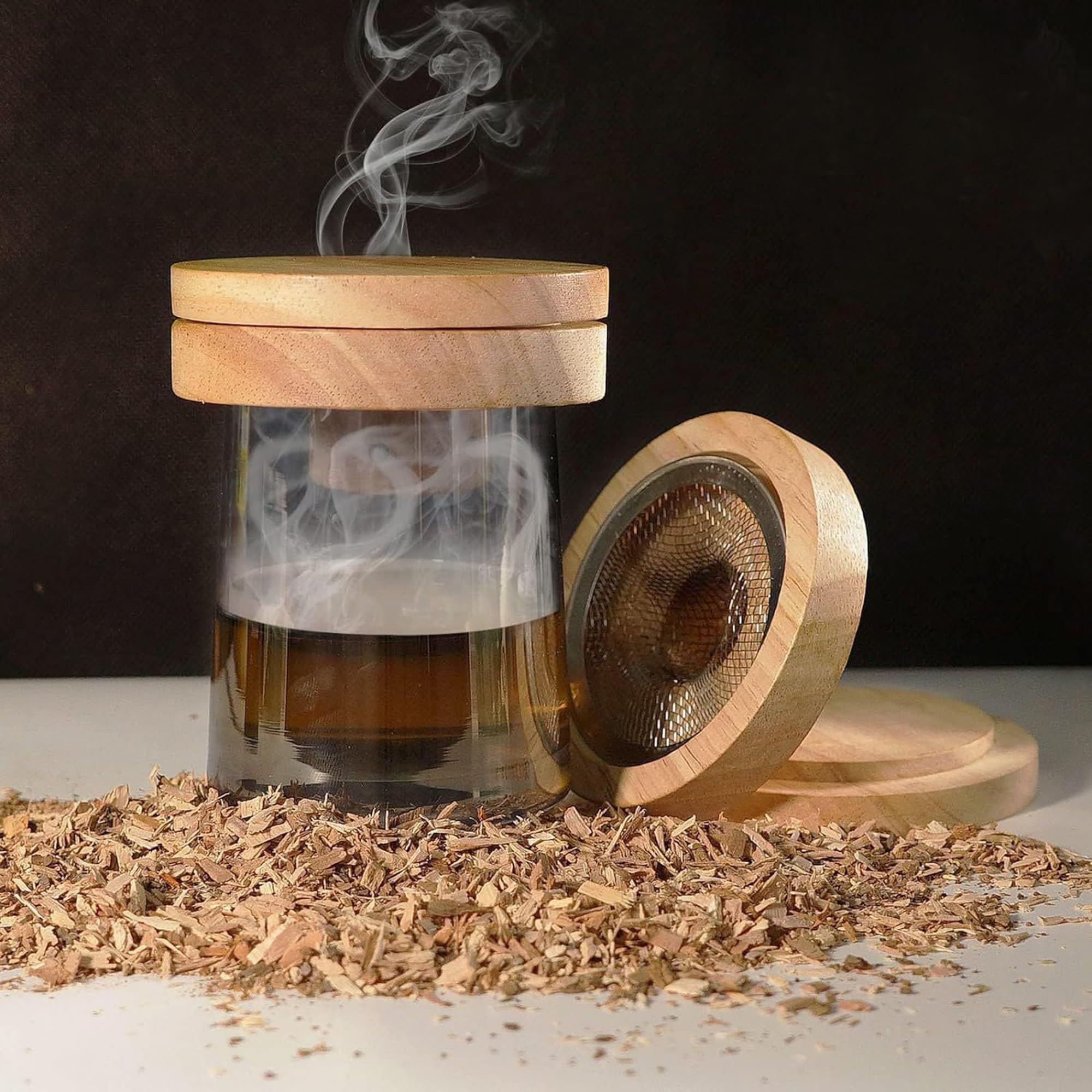 Fumoir Whisky Bourbon Copeaux Bois Torche Kit Fumoir à Cocktail Yiiwinwy - 6 Saveurs De Bois, Torche Incluse, Sans Butane Cadeau Homme Cocktail Fumé Composé d’une cheminée fumeur, d’un filtre en acier inoxydable, d’une brosse de nettoyage et de quatre boîtes de copeaux de bois de différentes saveurs (pomme, cerise, chêne et noyer), ce kit transforme vos cocktails en véritables œuvres d’art gustatives Accessoire Fumoir Pour Café Et Vin Rouge Kit Fumoir Cadeau Amateur Whisky Fête Des Pères à Cocktail Avec Chalumeau - 6 Arômes Bois Pour Whisky Et Bourbon - Cadeau Original Arômes Bois Spiritueux Kit Fumage Whisky Copeaux Bois Aromatisation Kit de copeaux de bois : ce kit contient cinq variétés de copeaux de bois : noyer, chêne, cerisier et bois de pomme, une brosse, une cuillère et un filtre en bois Pratique et pratique : 4 saveurs différentes de copeaux de bois sont adaptées à différents goûts. Kit fuoir cocktail avec torche (sans butane) - Cadeau fête des pères - Kit whisky bourbon avec... ce qui le rend facile à transporter et à utiliser. Idée cadeau : que vous offriez cet ensemble à cocktail smoky à votre père, mari ou amis qui aiment les cocktails et le whisky, cet ensemble est un cadeau très pratique et créatif Profitez des changements de goût générés par la fumée que vous laisserez définitivement avec un arrière-goût sans fin Expérience forte : chaque fumée naturelle de sciure de bois absorbée par les boissons ou les aliments produit un goût fumé unique, et vous pouvez
