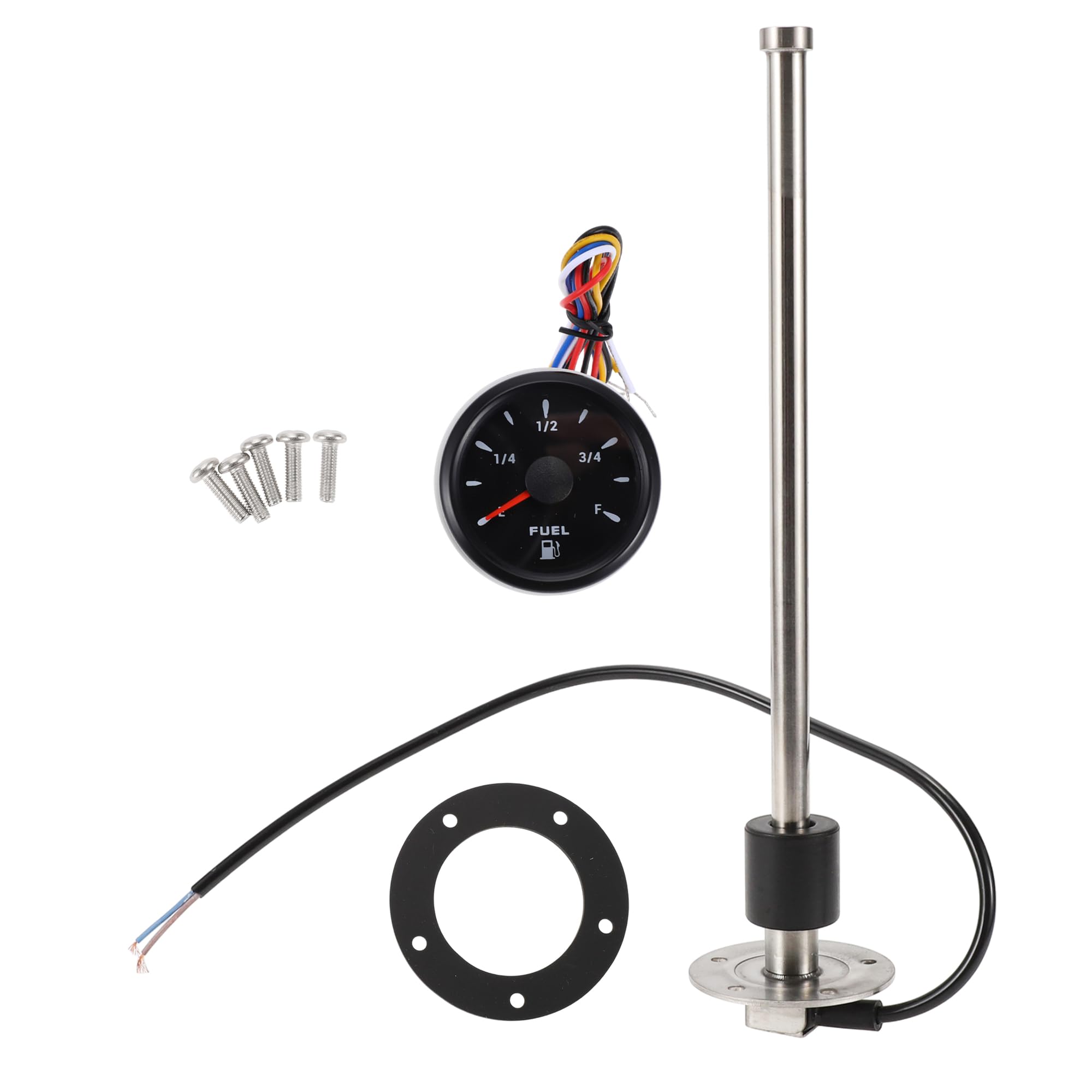 Ce que vous obtenez : 1 Ensemble d'unité d'envoi de carburant et de jauge. Jauge Carburant Universelle Voiture Camion Kit Jauge Carburant Marin 325mm Pour Bateau, 1 Ensemble, Noir, 0-190 Ohm Sonde Carburant Métal 800mm Compatibilité du véhicule:L'unité d'envoi marine est adaptée aux voitures, navires, camions, bus, bateaux, etc. UNITÉ D'ÉMISSION JAUGE de carburant améliorée pour Suzuki Samurai... Compatibilité du véhicule : Lire avec précision la jauge de carburant affiche les informations de niveau d'eau de carburant gazeux dans le réservoir de bateau marin RV voiture camion, pas besoin de s'inquiéter de la quantité de carburant gazeux restante. Fabriqué en : C'est un bon remplacement pour une unité d'envoi de réservoir de carburant marine cassée dans un réservoir de carburant de bateau marin. Une unité d'envoi de carburant et d'eau durable est conçue pour une longue durée de vie. Le capteur de carburant est facile à installer et à utiliser, fixez le capteur, puis connectez le câblage et il commencera à fonctionner. Une unité d'envoi d'eau de carburant durable est destinée à... Le fil bleu se connecte au pôle négatif de l'alimentation électrique., 2., Et connectez le fil rouge de signal de l'unité d'envoi de niveau de carburant au raccordement de la jauge. Caractéristiques:Signal de sortie : 0-190 OhmMatériaux : MétalLongueur : 800mm / 31,5Performance:Une unité d'envoi de carburant durable est conçue pour une longue durée de vie. Performance : Les unités d'envoi de carburant pour réservoirs de bateaux sont largement utilisées dans les réservoirs de carburant, d'eau, de kérosène et de produits chimiques, les générateurs/ensembles de générateurs et le domaine maritime. Unité d'envoi de carburant Jauge de niveau d'eau Affichage nuérique Le capteur de carburant est facile à installer et à utiliser, fixez le capteur, puis connectez le câblage et il commencera à fonctionner. Guide d'installation : Pour assurer une lecture précise, vérifiez d'abord la profondeur du réservoir pour vous assurer que la longueur est correcte.