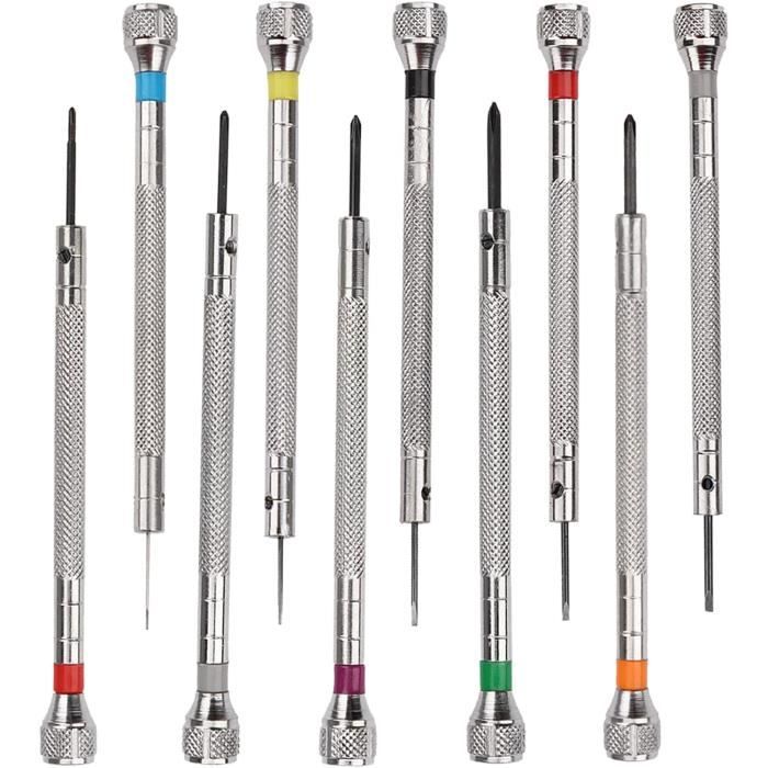 Il est étroitement lié pendant l'utilisation et est agréable au toucher. Jeu de tournevis EBTOOLS - 10 pièces en métal pour réparation de Il peut également être utilisé pour démonter et monter d'autres machines de précision. Tournevis Horlogerie Kit Réparation Montres - 8 Mini Tournevis De Précision Pour Lunettes Tournevis Lunettes Design pratique : le dessus du tournevis d'horloger a un design rotatif, petit tournevis qui est plus facile et plus pratique à utiliser et améliore la vitesse et l'efficacité. Vous pouvez le mettre dans votre poche et le transporter avec vous. Mini Tournevis, Tournevis Pour Lunettes, 24Pcs Tournevis De Réparation... Il est étroitement lié pendant l'utilisation et est agréable au toucher Large application : le kit de tournevis petit est bien conçu et peut être utilisé pour réparer des montres, des lunettes, des téléphones portables, des appareils photo, etc. Mini-tournevis électrique 32 en 1, kit de tournevis électrique sans fil... Différentes tailles : vous recevrez 2 boîtes de tournevis de précision, y compris tournevis cruciforme ; tournevis plat ; le jeu de tournevis de précision est le choix parfait pour la réparation de montres, lunettes et autres tournevis de montre. Jeu de tournevis de précision - C'est un must dans votre boîte à outils. Lot de petits tournevis. 【Jeu de tournevis d'horloger de qualité supérieure】Le tournevis de précision est composé de matériaux de qualité supérieure, durables et ne rouillent pas facilement. Le traitement de surface du kit de tournevis de lunettes n'est pas facile à user et à oxyder, et augmente la dureté de l'outil d'horlogerie, ce qui prolonge efficacement la durée de vie