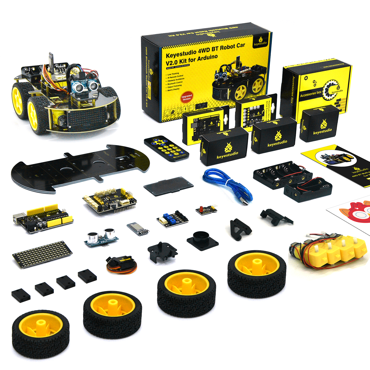 Multifonctionnel : ce chariot intelligent est doté de plusieurs fonctions , avec port de vitesse , port servo , traçage , position de fixation de barricade , etc . Le châssis est grand et stable et très facile à étendre . Liste des paquets : 2 x châssis de chariot4 x moteur à engrenages CC4 x roue jaune4 x cadran de vitesse à 20 fils pas ordinaire 6 fils 10 fils 8 x fixation24 x vis16 x écrou6 x poteau en cuivre1 x boîtier de batterie7 x fil 4 moteurs à courant continu à décélération : ce kit de voiture robot intelligent est alimenté par quatre moteurs à courant continu à décélération avec une puissance élevée et une bonne directivité ., 3 . Kits châssis de voiture robotisée intelligente 4 roues Avec quatre transmissions , la puissance est solide . Structure mécanique simple : ce kit de chariot robot intelligent adopte une structure mécanique simple et est très facile à installer ., 2 . Robot intelligent V4.0 Kit voiture robotisée avec caméra – Elegoo... ; il est pratique pour vous d'élargir vos expériences . 1 . Mode d'emploi : Retirez la voiture robot , installez la et utilisez la . Châssis 4 Roues Arduino Kits De Châssis De Voiture Intelligente 4 Roues Motrices Pour Arduino Education, Voiture Robot En Acrylique à 2 Couches Kit Voiture Robot Arduino Kit Robot Châssis Voiture 4WD | Maroc 4 moteurs à courant continu à décélération : ce kit de voiture robot intelligent est alimenté par quatre moteurs à courant continu à décélération avec une puissance élevée et une bonne directivité .