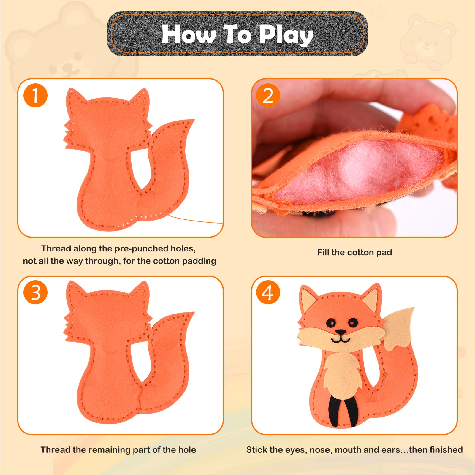 Les enfants de moins de 3 ans doivent être accompagnés d'un adulte. GOOMP KITS D'ARTISANAT en Feutre,Kits de Couture en Feutre de Animal,Ensemble d' EUR 39,99... Le feutre étant pré-percé, le kit de vissage convient parfaitement aux débutants, ce qui peut également aider les enfants à se tenir à l'écart des produits électroniques. Vous et vos enfants passerez un bon moment à coudre ensemble et laisserez de beaux et précieux souvenirs d'enfance à l'enfant. Cool Maker Victse Kits De Couture Enfant, Kits D'artisanat En Feutre, Materiel Cadeau Créatif Anniversaire Ciseaux de sécurité : Une petite paire de ciseaux pour le bricolage, faciles et sûrs pour les débutants ; Rembourrage en coton : pour que la forme en feutre soit vivante et tridimensionnelle. Kit de Couture pour Enfants Jouet éducatif Précoce Les jouets de couture sont une bonne activité de coordination main-œil qui peut aider les enfants à développer leur patience, à entraîner leurs mains et à améliorer leur réflexion et leur concentration. Fils à broder : Utilisez des fils à broder colorés appropriés pour coudre les tissus ensemble. 。◕‿◕。【Large Application】Ce sont des cadeaux idéaux pour les amis, les familles, les enfants et les étudiants à l'occasion des anniversaires, de la fête des enfants, du jour de l'an et de Noël. Ils peuvent également être utilisés comme jouets éducatifs dans le cadre de l'enseignement à domicile, de projets scolaires et de cours en colonie de vacances. Augmenter l'interaction Parents-enfants Les parents peuvent accompagner leurs enfants dans l'apprentissage de la couture, remplir du coton et fabriquer ensemble un jouet en feutre. Le paquet Comprend des Animaux de la Forêt 12 Pcs Formes d'animaux en Feutre Prédécoupées 32 Pcs Accessoires Autocollants 5 Couleurs Fil à broder 6 Pcs Aiguilles à Coudre en Plastique 1 Pcs Ciseaux en Plastique 1 Pack of Rembourrage en Coton Le paquet Comprend la Licorne Arc-en-ciel 5 x Forme en Feutre Prédécoupée 1 x Ciseaux de Sécurité 5 x Aiguilles à Coudre en Plastique 12 x Fil à Broder 40 x Aiguille Fixe 1 x Boule d'insertion d'aiguille 1 x Rembourrage en Coton 1 x Boîte Le paquet Comprend la Petite Fille 5 x Forme en Feutre Prédécoupée 1 x Ciseaux de Sécurité 3 x Aiguilles à Coudre en Plastique 8 x Fil à Broder 1 x Rembourrage en Coton 1 x Boîte Note Chaleureuse Contient de petites pièces, attention à l'ingestion. Facile à utiliser]Le kit de couture pour enfants est livré avec un guide illustré, simple et facile à comprendre. Étant donné que le feutre animal est pré-percé, il convient très bien aux débutants Ils acquièrent également des connaissances de base en couture, en enfilage d'aiguilles et en maniement des ciseaux. 。◕‿◕。【Augmenter l'interaction Parents-Enfants】Les parents peuvent accompagner leurs enfants dans l'apprentissage de la couture, remplir du coton et fabriquer ensemble un jouet en feutre. Kit de Couture pour les Fournitures d'Artisanat pour Enfants, Kit