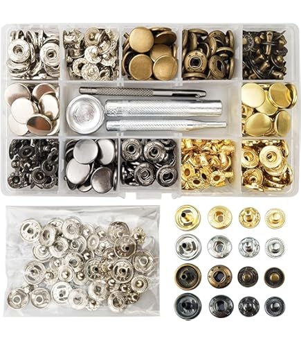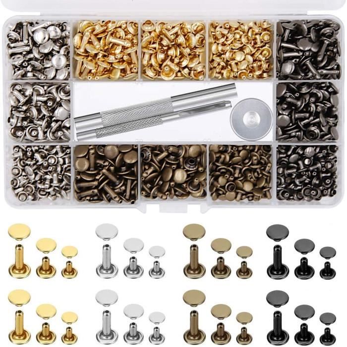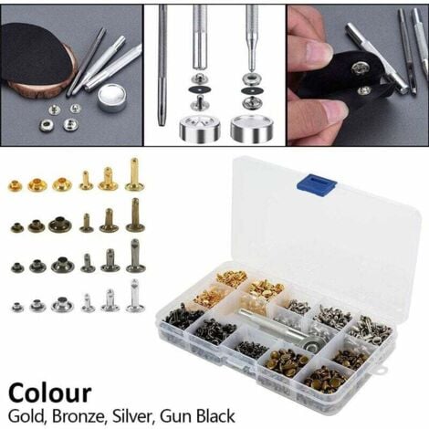Couleur : or + argent + bronze., Matériau : métal. Seul le contenu ci-dessus n'est pas inclus. La lisse des rivets est plaquée en 3 couleurs, sont tendance et ne se décolore pas et ne rouille pas facilement. Pince perforatrice : convient uniquement pour le cuir souple. 240 Ensembles de Pinces à Rivet Métal 3 Tailles Rivets à Double Capuchon pour Ceintures, Coupe-vent, Vestes, Sacs à Dos Contenu : 300 rivets en cuir., 2 outils de fixation., 1 * 1 pince à poinçonner. Puis martelez et les rivets., 7., Complétez une bonne face ., 8., Finition du dos Remarque : Ces rivets en cuir sont de petits articles, veuillez les garder hors de portée des enfants pour éviter d'étouffer par erreur. RIVET UWEL Lot de 300 rivets en cuir tubulaires agrave double capuchon... 300 ensembles de rivets à double capuchon sont disponibles en 3 tailles différentes : 6 mm x 6 mm, 8 mm x 8 mm, 8 mm x 12 mm, pour le cuir et l'artisanat de différentes épaisseurs ; 3 couleurs différentes pour répondre aux besoins de différents travaux manuels. Rivets fixes pour éviter tout mouvement. ( ) Les rivets pour cuir et l'installation sont fabriqués en fer , ne se déforme pas et ne se casse pas facilement. Rivet Metal MSA 300 Kits Rivets De Cuir Goujons À Double Capuchon Avec Pinces Pour Artisanat Ceinture Vestes Accessoires Maroquinerie Fixation Tous les rivets sont soigneusement rangés dans une boîte transparente. 300 ensembles de fournitures pour le travail du cuir sont livrés avec 4 fixations : 1 poinçon, 1 installateur de rivets, 1 pince à poinçonner et 1 pince à poinçonner Facile à utiliser : kit de rivets en cuir vous fournit 4 auxiliaires conçus pour maintenir les rivets pour éviter le mouvement et l'installation plus simple, permettant aux rivets d'être plats après l'installation.