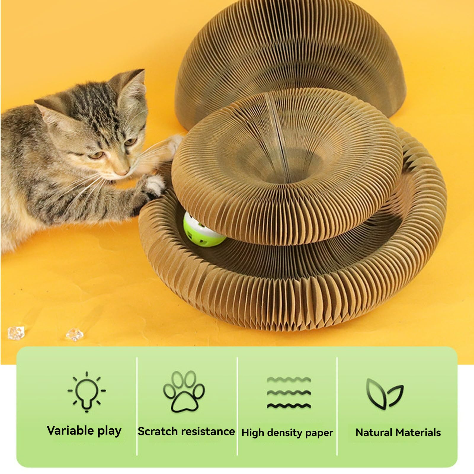 Aazon.co : ULooee Kitty Kurlz, agic Organ Cat Toy, Cat Scratching Board Toy with a Ball... Cette planche à gratter Magic organ CAT a une forme amusante, idéale pour s'étirer et jouer, c'est quelque chose qu'ils aiment gratter avec leurs pattes , 2., Fonction intéressante: équipé d'une balle jouet et d'une piste de stimulation supplémentaire, les chats peuvent chasser et attraper la balle tout en satisfaisant leurs instincts naturels. La conception d'accordéon pliable peut également aider à protéger vos meubles contre les griffes., 3., Matériel sûr naturel: les jouets de chat sont faits de carton recyclé lourd. Griffoir Carton Chat LLELEMAMO Kitty Kurlz, Kitty Kurlz Cats Toy, Magic Organ Cat Scratcher Board, Foldable Cat Accordion Toy With Bell Balls And Track Adventure For Indoor, Interactive Mental Physical Exercise (1pcs Jouet Interactif Balle Piste Nous recommandons deux pistes pour que vous puissiez voir des opportunités illimitées Spécifications: Nom du produit: jouet pliable pour chat Matériau: papier nid d'abeille ondulé Déplié: 24 * 24 * 11cm fermé: 11 * 10 * 7cm Couleur: brun Contenu net: 330 grammes Le forfait comprend: 1 pièce * jouet pliable pour chat Note: 1., Veuillez permettre une légère déviation de mesure due à la mesure manuelle 2., La couleur réelle de l'article peut être légèrement différente de celle montrée dans l'image en raison du moniteur et de l'effet de lumière différents Mode d'emploi no, 1., Jouets pour chats: les chats présentent des symptômes d'anxiété et de stress dus à l'ennui. kittysping ,kitty spin royaume felin,kitty spin chat,medvala Description du produit Description du produit Carton d'amour et ressorts pour chats. C'est un complément polyvalent au temps de jeu de votre chat.