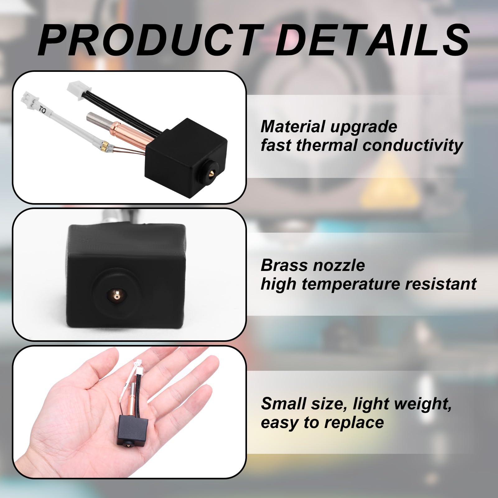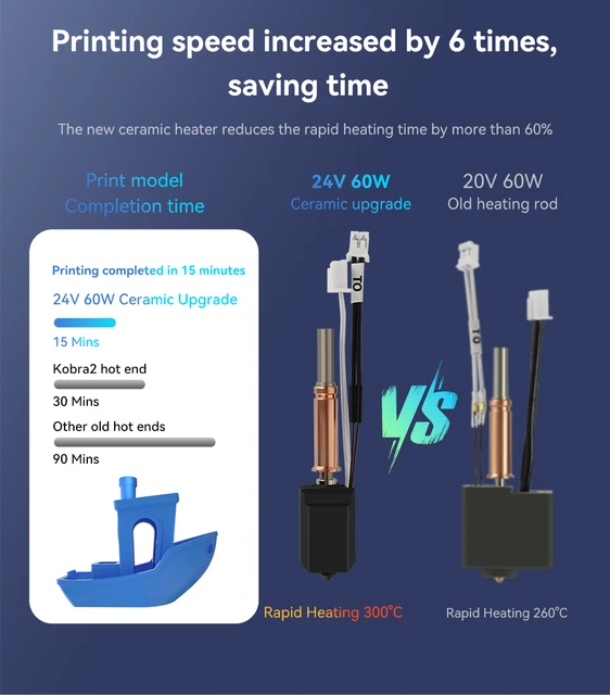 HIKUDIY Kit de boquillas y calcetines de silicona para Neptune 4... Impression à grande vitesse : la tête d'impression HIKUDIY kobra 3 max prend en charge une impression rapide de 600 mm/s, permettant aux modèles d'être imprimés plus rapidement, obtenant ainsi une impression de qualité. Installation facile : le kit hotend adopte une conception intégrée entièrement métallique, permettant un remplacement sans effort et une maintenance simplifiée Buse 0.4mm Acier Trempé Kobra 3 Hotend Module Câble De Tête D'impression Anycubic - Pour Imprimante 3D Et Combo Impression 3d Anycubic Kobra 3 Buse Acier Trempé 0.4 Mm Compatible avec : Anycubic Kobra 3 Max Contenu : Kit de tête d'impression Kobra 3 Max Impression haute vitesse : le kit d'extrudeuse Hotend est conçu comme une forme spéciale. La tête d'impression chauffe uniformément et l'alimentation est lisse. L'intérieur de la buse est lisse sans bavure, ce qui réduit la résistance à l'air et évite la congestion du filament Marque : HIKUDIY Matériau : Acier trempé Filaments compatibles : 1,75 mm PLA, ABS, PETG, TPE, TPU, PC, etc. Extrudeuse haute vitesse 24 V 65 W - Hotend W/bimétallique Heatbreak - Compatible avec Anycubic Kobra 2, Kobra 2 Plus, Kobra 2 Max, Kobra 2 Pro, Kobra