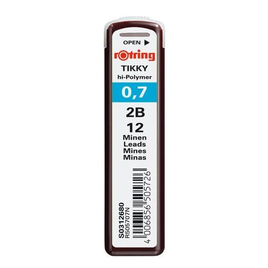 Mines Porte-mine Rotring Tikky 0.7mm Rotring Tikky Mekanik Kurşun Kalem 0.7 Mm Siyah Uç Hediye 1908501 3501179085012 Mines Dures Facile à Gommer Crayon Mécanique 0.7mm Lot De 3 Porte-mines ROtring Tikky Pastel 0,7 Mm - Gomme Et Recharges HB Incluses - Bleu Opale Mine 0.7 rOtring Tikky Recharges pour porte-mine, 0,7 mm, B, lot de 10 étuis (120 mines) : : Fournitures de bureauImportant : Votre carte de crédit ne sera pas débitée lorsque vous commencerez votre essai gratuit ou si vous annulez pendant la période d'essai. Si vous êtes satisfait d' Prime, ne faites rien. A l'issue de la période d'essai, le programme Prime est... Derrière chaque instrument de dessin rOtring se cache un artiste qui affirme sa personnalité. Ce besoin de créer, de comprendre et de s’exprimer fait partie intégrante du développement de chaque instrument de dessin rOtring. La perfection technologique et la qualité de l’ergonomie et du design créent les conditions idéales pour dessiner et donner libre cours à son imagination. Les instruments de dessin technique rOtring sont des modèles de qualité et de précision. Disponibles en 2H, H, HB, B , ces mines sont des accessoires professionnels pour s'exprimer tout en nuances et affirmer son style en dessinant, croquant ou écrivant. Les mines Hi-Polymer garantissent un résultat de qualité Le lot comprend 120 mines B de 0,7 mm (10 étuis de 12) Mines en polymère pour des résultats de qualité; Les mines sont extra solides et flexibles pour écrire et dessiner toute la journée; Facile à effacer...