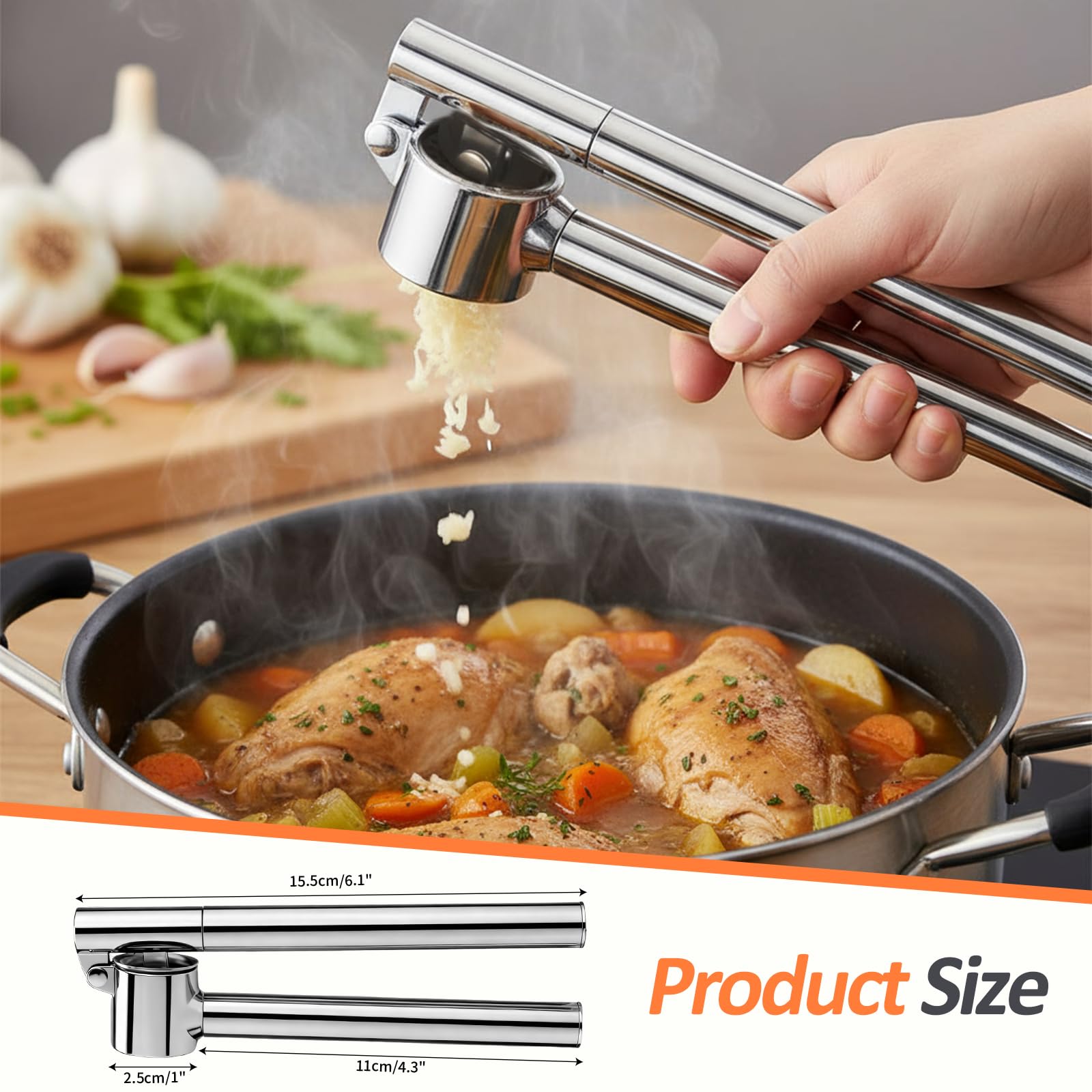 Ecrase pomme de terre professionnel | Ustensiles & Cuisine Presse-ail Solide Facile à Nettoyer Ecrase Ail Ail Ustensiles De Cuisine L'Ail Ail Rocker Cuisine Gadgets Presse Ail En Soldes EN STOCK : Presse Ail, Concasseur à Ail, Presse Ail en Acier Inoxydable, Professionnel Crusher Pratique Lave Vaisselle Nettoyer, Ecrase Ail avec Poignée Antidérapante pour Restaurant Maison Cuisine, GDS-827 pas cher. Livraison rapide partout en France presse ail cuisine couteaux et ustensiles de cuisine ustensiles de cuisine inox ecrase ail presse ail inox hachoir manuel ail presse ail inox professionnel coupe ail hachoir kitchen kitchen tools & gadgets presse-ail gadget cuisine pressoir a fruit Description presse ail inox Le Presse ail inox est l'ustensile de cuisine indispensable pour presser votre ail efficacement. Placez une gousse d'ail dans le réservoir prévu à ceet effet puis par une simple pression, vous obtenez une purée d'ail cru qui révèlera toutes ses saveurs et donnera à vos plats de belles saveurs du Sud Ergonomie et Praticité: Avec ses quinze virgule cinq centimètres de longueur et cinq centimètres de hauteur, la poignée longue et ergonomique assure une prise confortable et un effet de levier optimal pour requiert un effort minimal lors du pressage, un gadget cuisine pratique pour tout amateur de cuisine Epluchage et Broyage Efficaces: Equipé d'un tube en silicone noir pour éplucher l'ail rapidement facile à utiliser, et d'un mécanisme de presse ail professionnel qui écrase l'ail en une texture fine et uniforme, idéal pour relever vos plats avec une saveur d'ail frais
