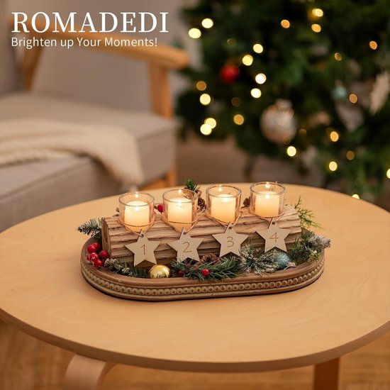 Allumez les bougies et ajoutez une touche festive à votre table Bougeoirs de Noël modernes : ces bougeoirs se distinguent par leurs ornements en métal et leur base stable en bois massif. Support Bougie Métal Motifs Noël Couronne De L'Avent Moderne En Bois : Bougeoirs Cosmos Tones Avec Plateau - France Support Bougie Chauffe-plat Couronne de l'Avent Romadedi - Bougeoir Allongé en Bois Avec 4 Bougeoirs en Verre - Chiffres pour 4 Bougies - Décoration Moderne pour Noël, Salon - 38 cm de... Les ornements en métal sont découpés avec précision, polis et peints à plusieurs reprises, ce qui crée une construction robuste, résistante à la déformation et à la rouille. Le pied de chandelier est fabriqué en bois massif coupé et poli pour un toucher agréable et une longue durée de vie. Nous y répondrons dans les 24 heures. Ils sont également un cadeau parfait pour les amis, la famille, les collègues et les voisins et transmettent chaleur et affection à vos proches Contenu de la livraison : 1 bougeoir de l'Avent. Les éléments décoratifs en métal combinent différents motifs de Noël. Le bonheur arrive : le bougeoir est magnifiquement décoré d'éléments tels que des rennes, du Père Noël, du sapin de Noël, de la fumée de cuisson et des maisons. Contenu de l'emballage : 1 bougeoir., Remarque : 1., Veuillez lire attentivement le tableau des tailles avant de passer commande., 2., En raison de la différence de lumière et d'écran, la couleur de l'article peut être légèrement différente des images., 3., Les mesures étant prises à la main, les tailles indiquées peuvent varier légèrement., 4., Si vous avez des questions sur le produit, veuillez nous contacter. Taille parfaite : avec un diamètre de 34 cm, cette couronne de l'Avent est assez grande pour tenir sur une table ou une commode, tout en étant assez... La base en bois dispose de 4 trous ronds pour insérer des bougies (les bougies ne sont pas incluses). Utilisation polyvalente : les bougeoirs sont parfaits pour les décorations de Noël, les décorations de l'Avent, les décorations de Noël, les décorations de table et les guirlandes lumineuses. Emballage : dans un carton. La Couronne de l'Avent | Le Manège de