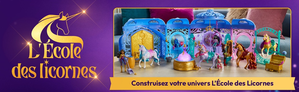 Appuyez sur le bouton placé sur le sabot de Wildstar et regardez la fontaine émettre des lumières et des sons spécifiques au Pouvoir Lumière de Wildstar. L'ECOLE DES LICORNES - Bienvenue dans le monde féérique de L’Ecole des Licornes ; Sophia et ses 5 camarades doivent tisser des liens uniques avec leurs licornes pour libérer leurs pouvoirs magiques et protéger l'île et l'école des forces obscures CRÉATIVITÉ ET IMAGINATION - Les enfants peuvent laisser libre cours à leur imagination et inventer toutes sortes d'aventures magiques pour leurs licornes et leurs chevaucheuses préférées L'Ecole des Licornes Sophia, Ava, Isabel, Layla, Valentina ou Rory Comme dans le dessin animé, les licornes peuvent se reposer à l'écurie et reconstituer leur magie à la fontaine. Ecurie Magique - L'Ecole des Licornes Spin Master : King Jouet, Barbie À l'intérieur de l'écurie, placez la selle de Wildstar sur le porte-selle et brossez la licorne ; donnez-lui quelques baies célestes après avoir retourné le couvercle du baril ; entraînez-vous à sauter avec l'obstacle circulaire et bien plus encore. Inspiré par la série animée NETFLIX et par les livres à succès dans lesquels règnent des valeurs d'amitié, ce coffret offre des heures de jeu imaginatif sans fin. Unicorn Acadey - L'Ecole des Licornes - Écurie, Fontaine, Licorne... CADEAU ENFANT - Pour un anniversaire ou Noël, offrez L'écurie Magique L'Ecole des Licornes Unicorn Academy à un enfant ; Passez de super heures de jeu à travers cet univers magique en lui faisant découvrir les valeurs de l'amitié et du courage Recréez la magie de L'École des licornes avec le coffret Ecurie Magique et Wildstar. ÉCURIE DES LICORNES 91 CM DE LARGE - Basé sur la série populaire Netflix et les livres pour enfants à succès, ce coffret donne vie aux écuries des licornes grâce à une fontaine lumineuse, une figurine Wildstar de 13 cm exclusive et 24 accessoires Ecoles De Licornes Streaming Vf Unicorn Academy, L'Ecole Des Licornes, Licorne Leaf Et Poupée Ava, Licorne Jouet Fille 6 Ans Découvrez vos personnages préférés de L'Ecole des Licornes, Unicorn Academy, à travers les petites poupées Sophia, Ava, Layla, Isabel, Valentina et leurs licornes (vendues séparément) et complétez votre collection avec les poupées mannequins et licornes interactives (vendues séparément COLLECTIONNEZ-LES TOUS - Revivez les scènes de la série animée L'Ecole des Licornes, Unicorn Academy et collectionnez toutes les licornes, poupées, personnages et accessoires (coffrets vendus séparément) ; jouet enfant 4 ans facile à prendre en main