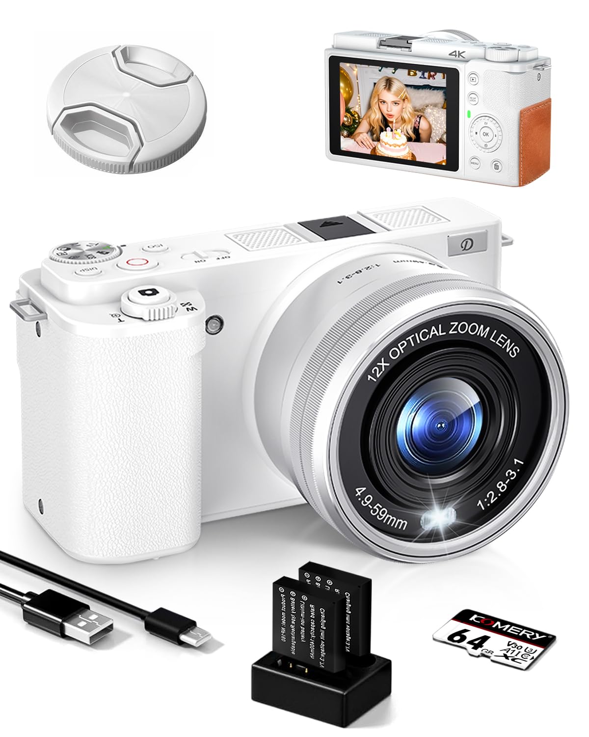 Appareil Photo Numérique,4K Autofocus Appareil Photo Compact Portable Appareil Photo Wi-Fi Test De L'appareil Photo Numérique 5K Avec Autofocus Et Zoom 10x Appareil HDMI Caméra IP Hikvision DS-2DE7A412MCG-EB 4MP zoom optique 12X AcuSense... Système de zoom optique 12x : plage de focales de 4,9 à 59 mm, grande ouverture F2,8 combinée à une vitesse d'obturation de 1/2000 s, capture précise des changements dynamiques en 0,01 seconde Appareil Photo Nuérique Copact 4K HD 48PAutofocus avec 32G Carte... Double batterie standard de l'industrie : 2 × 1 600 mAh pour un enregistrement 4K continu, charge rapide DC 5 V/2 A en 90 minutes pour une puissance maximale Veuillez noter que l'appareil photo ne peut être connecté au téléphone que par Wi-Fi et ne dispose pas d'une connexion Internet directe.
