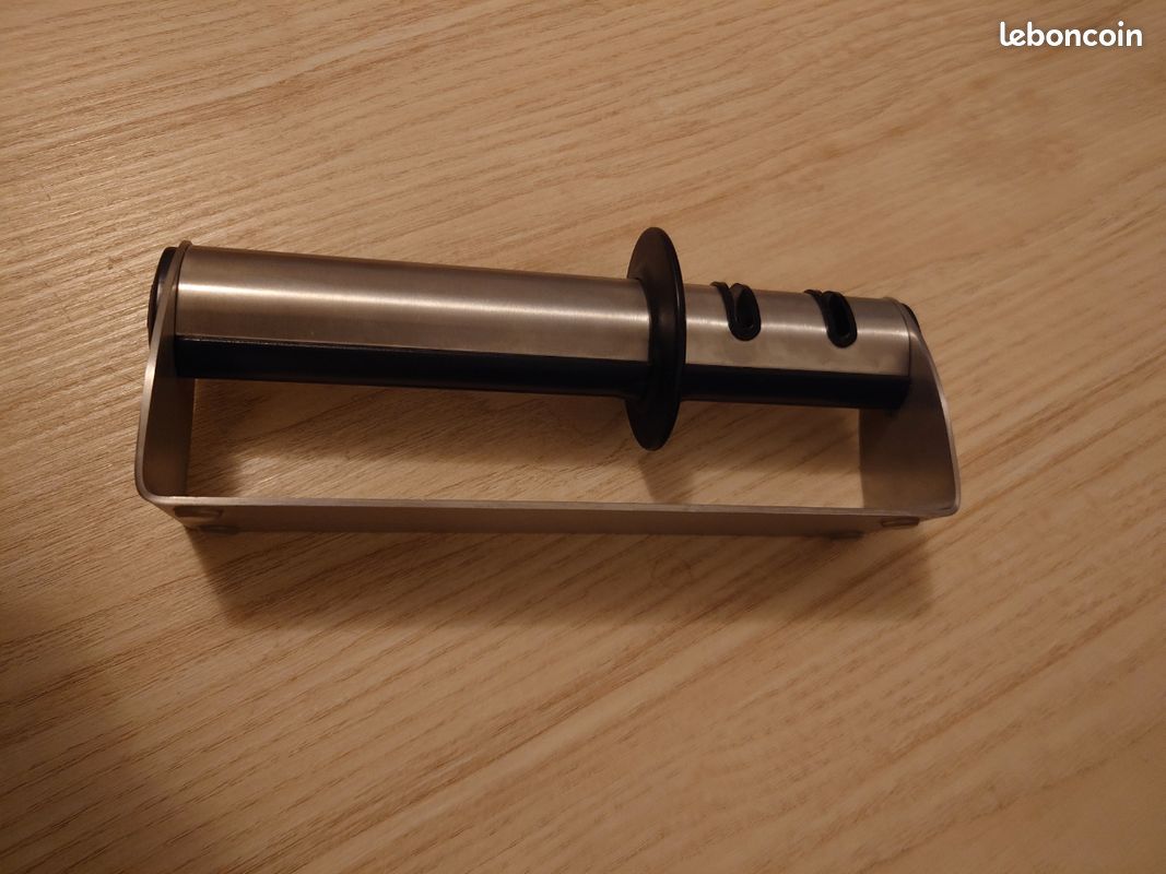 Couteau Ceramique Aiguiseur Twinsharp Argent - Toute L'offre Ustensile De Cusine De Couteaux Miyabi L’aiguiseur TWINSHARP® de ZWILLING est un affûteur permettant de redonner du tranchant à vos couteaux de façon simple et sécuritaire. Avec le temps, même le meilleur couteau perdra de son tranchant et doit ainsi être réaffuté Zwilling - Aiguiseur Twinsharp Noir Angle d'affûtage préréglé : les disques en céramique de l'aiguiseur sont réglés de manière à ce que tu n'aies qu'à passer le couteau dedans pour que la lame soit affûtée sans risque d'être endommagée. Première ouverture servant à réparer les lames ébréchées · Seconde ouverture servant à polir le fil de la lame · Disques en céramique · Structure en acier... Grâce à son manche incurvé en plastique, l'aiguiseur tient bien en main, pour un affûtage en toute sécurité. La poignée ergonomique assure une prise en main sûre pour un geste fluide et maîtrisé ; votre couteau redevient aussi tranchant qu’il doit l’être pour éplucher, ciseler et couper sans effort. Aiguiseur facile à utiliser : même les amateurs peuvent facilement affûter les lames émoussées. Avec TWINSHARP, l’affûtage grossier et fin des lames à tranchant lisse se fait en une seule étape : à l’intérieur, des disques en acier inoxydable et en céramique hautement durables travaillent de concert, tandis que l’angle d’affûtage préréglé garantit un résultat régulier sur la plupart des couteaux courants.