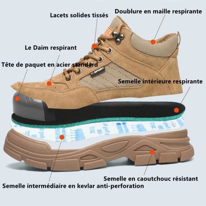 FAFA Chaussures de Sécurité Femmes Légère Embout Acier Respirante Largeur de la chaussure: Toe en acier renforcé et résistance à la perforation de la semelle intermédiaire en fibre: Le couvercle de l'orteil en acier renforcé de la chaussure de sécurité peut supporter jusqu'à 200 j impact et jusqu'à 15 000 N compression. Chaussure Montante Homme Basket De Sécurité Légère Protection Malléoles ROCKET S24 Baskets Sécurité Montantes Antidérapantes MATÉRIAU DE LA SEMELLE : ABSORBANT ET ANTIGLISSE : Les semelles creuses de nos chaussures de sécurité offrent une flexibilité, un amortissement et une absorption des chocs supplémentaires, réduisant ainsi l'impact sur les pieds et les genoux. Chaussures de Sécurité Homme - JINDING FZ207 - Légère Embout Acier... Chaussures de sécurité hommes femmes: Le tissu respirant en moustiquaire de nos chaussures de travail anti-smash et anti-puncture se caractérise par sa légèreté... LAISSEMENT : POLYVALENT : les chaussures de sécurité à lacets sont idéales pour les entrepôts, les chantiers, les forges et même pour les activités quotidiennes. La semelle intermédiaire a une résistance à l'impact et à l'usure. La durabilité et la protection de cette chaussure en font un choix fiable pour une variété d'environnements de travail et de loisirs. Nos chaussures de sécurité gardent vos pieds au frais et au sec, évitant l'inconfort et les bactéries odorantes, gardant vos pieds frais et sans odeur à tout moment. Il empêche les objets étrangers de percer la semelle extérieure et protège vos pieds contre les blessures. Nos chaussures de sécurité sont non seulement élégantes et uniques, mais aussi très légères pour réduire la fatigue du pied et vous permettre de vous déplacer librement tout au long de la journée de travail.