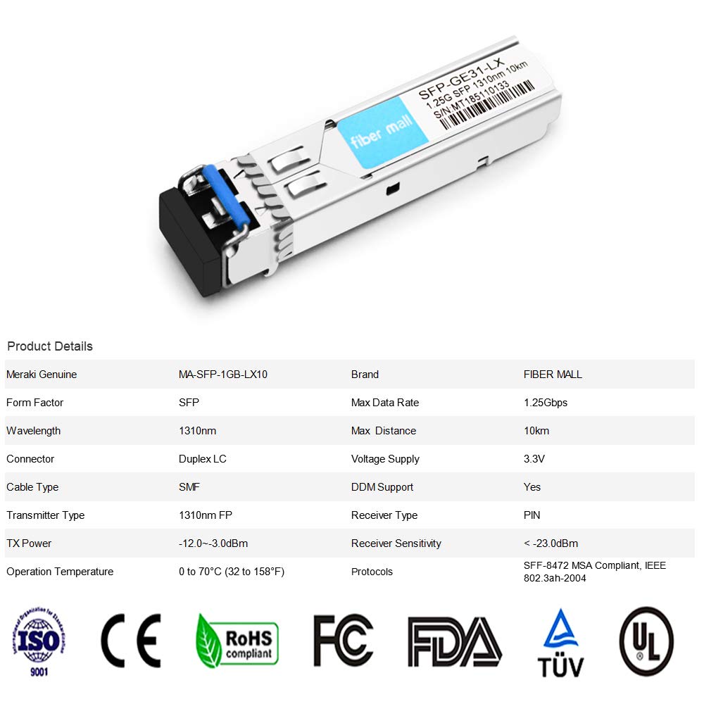 AIQ YP19013 SFP GE LX20 SM1310 Module Optique D'émetteur Récepteur Double Fibre Monomode Gigabit 20km 20km Dbt Mini Gbic 1000base-lx Ipolex Éetteur-récepteur LC Onoode SFP 1G, Odule Ini GBIC 1000Base SFP Mono-mode Compatible Cisco 1.25G SFP émetteur-récepteur LC Port fibre unique monomode 10KM... Débit de données : 1,25G bps Émetteur-récepteur Monomode Gigabit SFP LC, Module Optique D'émetteur... Consommation électrique : < 1 W OS1/OS2 : jusqu’à 20 kilomètres.