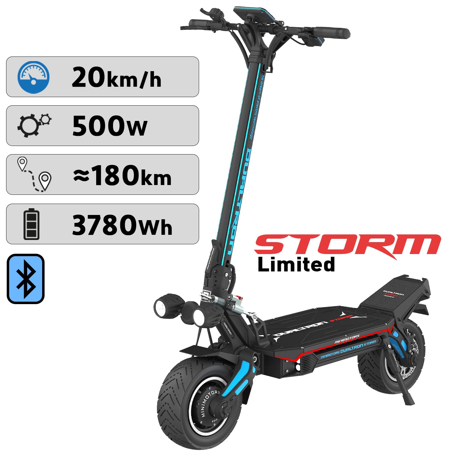 DUALTRON STORM LIMITED , La Bête La nouvelle édition limitée Storm est une mise à jour révolutionnaire de la gamme Minimotors, établissant une nouvelle norme sur le marché des scooters électriques avec ses fonctionnalités de pointe et sa puissance inégalée 2 Moteurs 5750W Autonomie 180 Km TROTTINETTE ÉLECTRIQUE DUALTRON NEW STORM LTD 84V45AH EY4 Trottinette Haute Performance La trottinette est équipée d'un moteur arrière et d'un moteur avant, qui produisent une puissance impressionnante pour de meilleures performances. La Dualtron Storm Limited a plusieurs modes de conduite avec une vitesse allant jusqu'à 25km/h. La dernière trottinette électrique Dualtron Storm Limited Edition est dotée d'une puissance motrice incroyable de 11 500W, tout en étant sportive et... La batterie au lithium fournit une puissance élevée. GRANDE CAPACITE DE LA BATTERIE : La batterie au lithium fournit une puissance élevée avec une autonomie allant jusqu'à 180km. BIEN EQUIPEE : Repose-pieds large et confortable, phare lumineux, semelle antidérapante, connectivité des applications intelligentes Profitez d'une conduite rapide et amusez-vous sans vous soucier constamment de la charge de la batterie