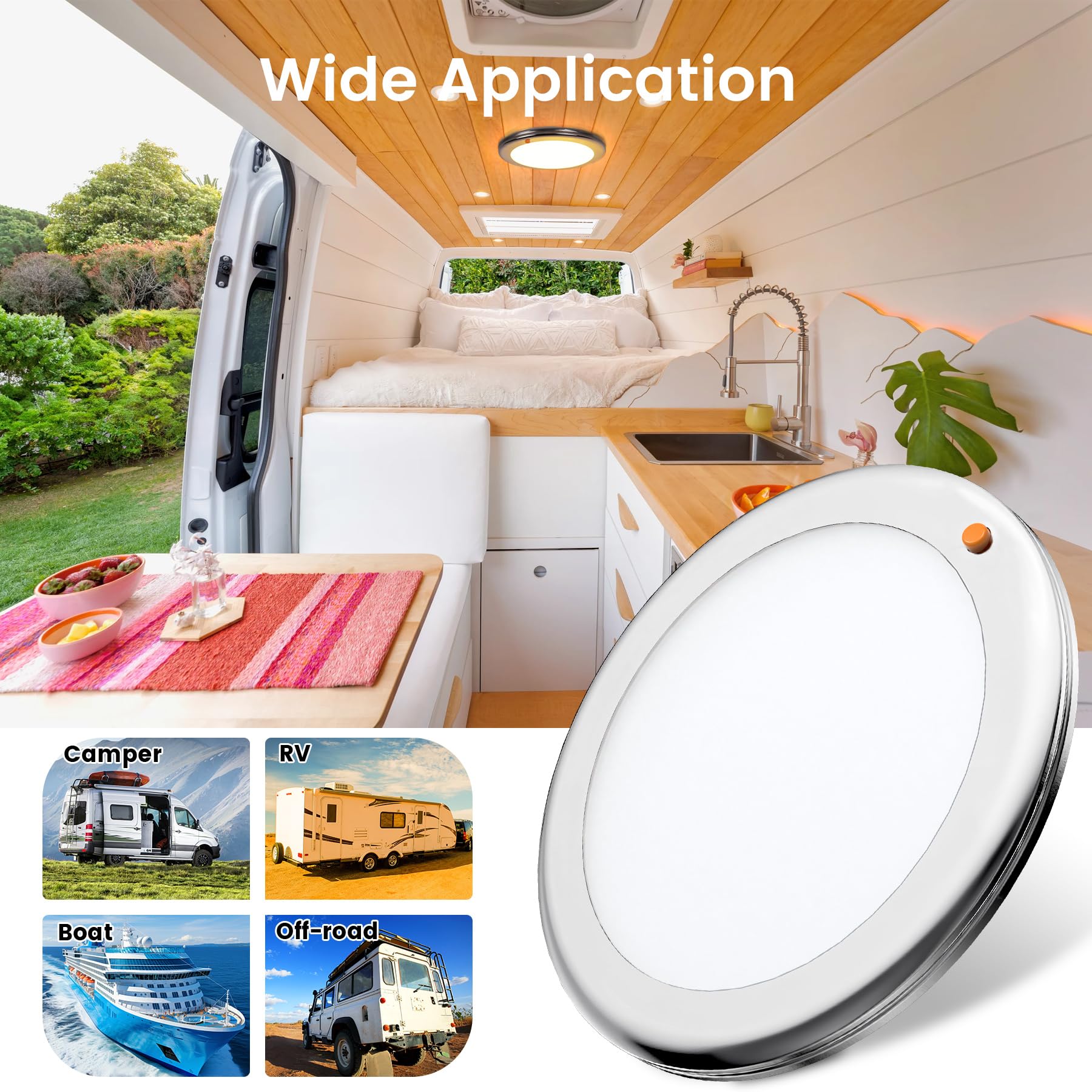 Éclairage apaisant sans éblouissement: Ce lampe 12v led camping-car diffuse uniformément des lumières confortables sans scintillement, pas d’éblouissement, pas d’ombre, sa technologie de diffusion optique avancée assure une distribution ultra-uniforme de la lumière, réduisant la fatigue oculaire Plafonnier Led Salle De Bain Plafonnier LED 12v Camping Car Interrupteur Vaiture Caravane Éclairage Spot 12v 1 100% Dimmable 2 70% Dimmable 3 30% Dimmable 4 5% Dimmable Éclairage apaisant sans éblouissement: Ce lampe 12v led camping-car diffuse uniformément des lumières confortables sans scintillement, pas d'éblouissement, pas d'ombre, sa technologie de diffusion optique avancée assure une distribution ultra-uniforme de la lumière, réduisant la fatigue oculaire Gradation en continu de 5 % à 100 %: Appuyez facilement sur le eclairage intérieur led bouton orange du feu de et maintenez-le enfoncé pour régler la luminosité de 5 % à 100 %. Passez en douceur d’une lumière ambiante douce à un éclairage clair et vif, créant ainsi une atmosphère simple et confortableuxe haut de gamme. TOTOX Plafonnier LED RV 12V 9 W pour caping-car, caravane... Cela élimine le besoin de plusieurs luminaires, ce qui permet d’économiser 30 % d’espace et d’énergie Remarque : Ce produit n’est utilisé que dans un environnement de tension DC 12V Conception ultra-mince de 1,3 cm: Avec un profil ultra-mince, cette 12v plafonnier led RV dimmable se monte sans effort sur votre camping-car / camion / fourgonnette / caravane / bateau / yacht / VW, économisant la chambre, la cuisine, la salle de bain, la salle de bain, l’espace libre tout en se fondant parfaitement avec l’intérieur de votre RV 2pcs Eclairage Intérieur Plafonnier LED Voiture Camion Camionnette Camping Car 12v 24v vous pouvez instantanément basculer entre (chaud et confortable), (neutre et naturel) et (lumineux et net) dans le plafonnier de camping-car. Fonction mémoire: La fonction de mémoire attentive de plafonnier spot 12v de la caravane se souvient de vos derniers réglages après la fermeture, de sorte que votre luminosité et votre température de couleur préférées sont automatiquement rétablies lorsque vous rallumez la lumière.
