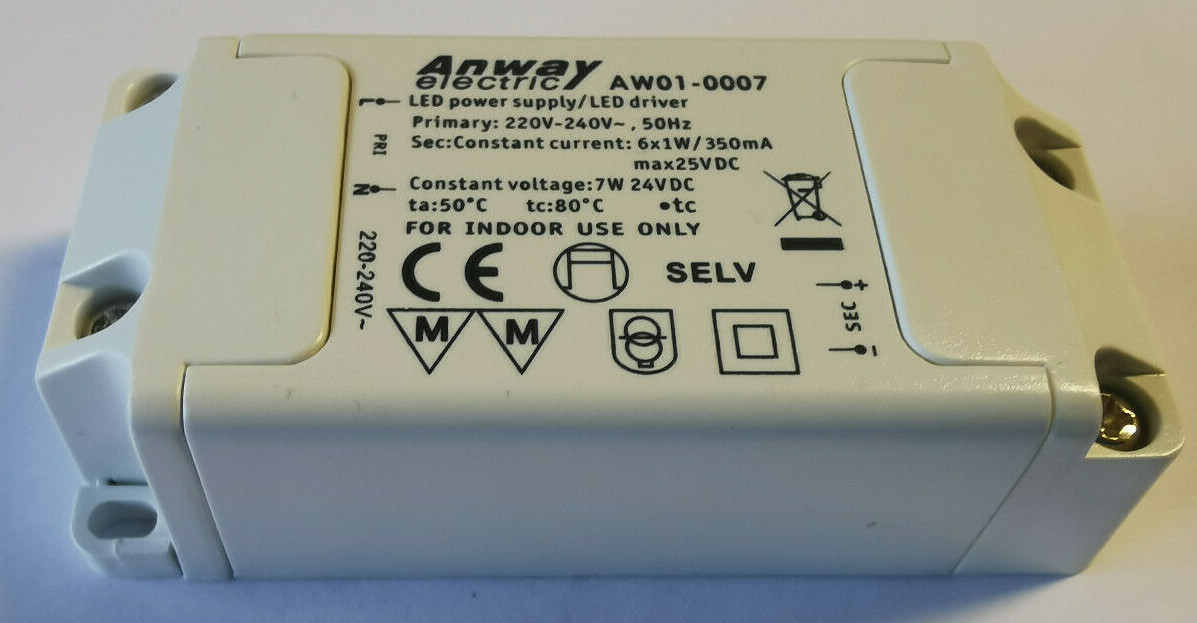 Bloc Alimentation LED 15W 500mA Anway - AW01-0037 - Pilote LED - 15 W/500 MA/6-28 V Transformateur LED 500mA 6-28V Dimensions (L x l x H) : 126 x 42,5 x 21,5 mm. Boîtier : plastique thermique. Entdecken Sie den ANWAY LED Treiber AW01-0037 mit 15W und 500mA. Ideal für 6-28V DC Anwendungen, kompakt und einfach anzuschließen. Perfekt für Ihre Beleuchtungslösungen Bloc d'alimentation LED Anway. Pilote de rail Din en plastique 60 W 0-10 V Pilote de LED à intensité Bloc d'alimentation à LED stabilisé de haute qualité pour le fonctionnement d'appareils à courant continu à l'intérieur. Domaine d'utilisation : convient uniquement pour les pièces sèches.
