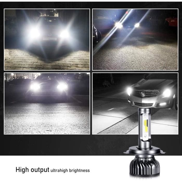 --Mini phares, sans fils, phares intégrés, plug and play, il suffit de les brancher dans la base du phare. Circuit intégré IC (régulateur de courant), réduit les interférences radio., haute qualité! Phares LED 12000LM 6000K COB KATUR Ampoule H4 LED, 16000LM H4 Phares Avant De Voitures Phare Route Croisement Lumineux Jeffergarden Puce d'ampoule LED de phare antibrouillard pour voiture de... --En utilisant des puces COB de haute qualité, jusqu'à 12000LM / paire, 60W / paire, émettent une lumière bleue glacée de 6000k et la luminosité est 300% supérieure à celle des ampoules halogènes. Matériau de la coque: aluminium d'aviation Puces LED COB haute efficacité pour créer un type de lumière parfait à 360 degrés. Réduisez les interférences! La dernière technologie de lumière bleue glacée peut assurer un motif de faisceau parfait à 360 °, pas de taches sombres ni de zones d'ombre, une consommation d'énergie réduite et une puissance plus élevée. Principe de dissipation thermique: ventilateur Économisez du temps et de l'espace. Plug & play, sa taille ultra-petite et son alignement exact. Ampoule Led H4 Moto Ampoule H4 Bleu 12V 60/55W Type P43T RMS Pour Moto Scooter Auto Neuf - Auto Lampe Frontale Led Rechargeable Plus spécial que la lumière blanche d'origine., Rafraîchissez-vous vite! Convient à la plupart des voitures. Source de lumière: puce LED COB, Couleur: Ice-blue 6000K, Entrée: 2A ± 0,2, Tension: DC12-24V, Puissance: 60W, Lumen: 12000LM, Étanche: IP65 Assurez-vous de confirmer le modèle approprié de votre voiture avant d'acheter.