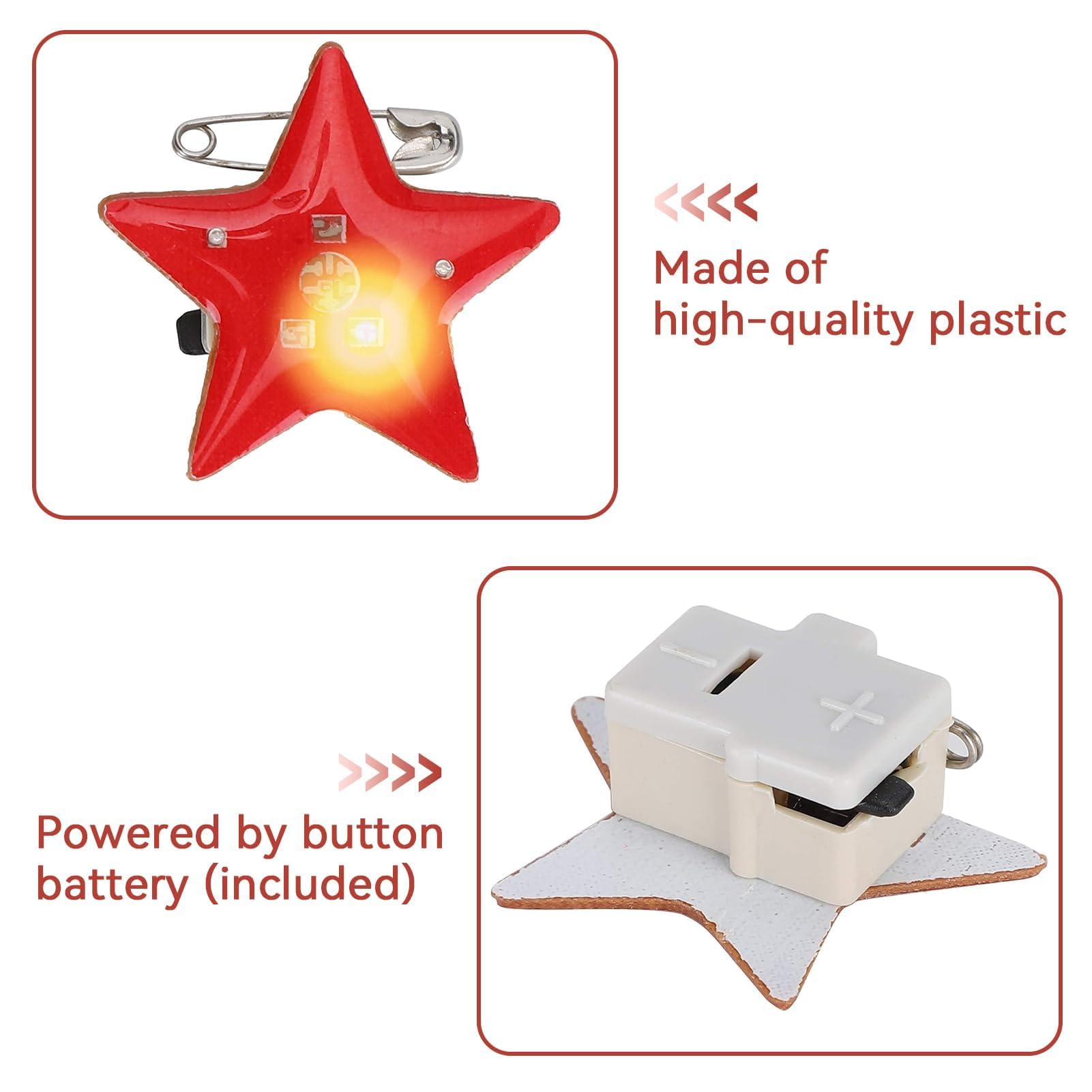 Description du produit 25pcs Broches Et épingles en Forme D'étoile LED, LED Broches Broche Broche Étoile Clignotante, Broche De Noël Broche LED Light Up Star Badge Broche SPECIFICATION : Type d'article : Broche LED, Matériau : Plastique FACILE À PORTER : La forme de dessin animé mignon semble intéressante. Modèle de pile : AG3 Application : Décoration de robe, décoration de fête IDÉE CADEAU : Ces broches sont de très jolies décorations de Noël, soulignent l'ambiance festive. LED Broches Broche excellent effet lumineux, belles et accrocheuses même la nuit. Broche LED étoile Christmas Badges 25pcs LED Brooch, Christmas Brooches, Christmas Brooch Pin LED Lights Star Badge Brooch Flashing Light Brooch For Valentine's Day Christmas Wedding Christmas Pins Décoration Festive Lumineuse VINGVO Broche de bouton de numéro chanceux Broche de bouton de modèle Broche étoile en métal Convient pour décorer des vêtements, des sacs, du scrapbooking, des pinces à cheveux, des bas, etc. Couleur : comme indiqué sur l'image Un cadeau idéal pour la famille et les amis Fdit épingles de dessin animé 25Pcs LED Broches Bande Dessinée... MULTI-USAGES : Ces broches élégantes peuvent habiller n'importe quelle tenue pour le travail, le mariage, les rendez-vous et les soirées. MULTI-USAGES LED Broches Broche : Ces broches élégantes peuvent habiller n'importe quelle tenue pour le travail, le mariage, les rendez-vous et les soirées. 25 pièces Badge étoile Une belle décoration pour les enfants et les adultes. Clothing Decor 25pcs Broche Led En Forma De Estrella De Cinc | Meses... GRANDE DÉCORATION badge lumineux : Broche Étoile Clignotante Parfait pour la fête d'Halloween, la fête des enfants et toute autre occasion. un travail de qualité Broche de Noël : Broche en forme de coeur de Noël à LED Style rétro classique raffiné, a lair adorable et vous mettra au centre de toutes les occasions LISTE DU PAQUET 25 x Broche LED