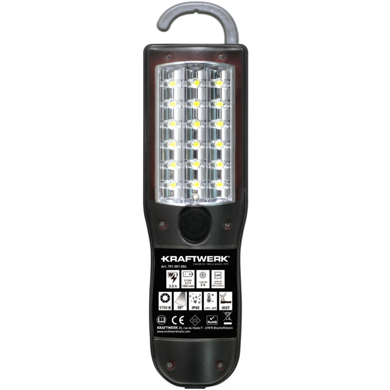 Lampe à main LED, WI300, rechargeable sans fil Chargeur sans fil et connecteur USB de type C... Contenu de la livraison : câble USB -C Données techniques : Poids : 0,31 kg Veuillez noter : décoration non incluse. Caractéristiques techniques : Poids : 0,31 kg Veuillez noter : décoration non incluse Veuillez noter : décoration non incluse. Lampe LED 4.5W 500 Lumens Présentoir Kraftwerk Avec Lampe à Main LED COB MINI 180 Rechargeable 12 Pièces 32069D12 Acheter à Bas Prix Autonomie 3.5h Ou 10h Durée de fonctionnement : 3,5 H (4,5 W) / 10 H (1 W) - Durée de charge : 4 H4,5 LED COB W sur La face avant 1 W SMD LED dans la tête de la lampe batterie 3,7 V / 2600 mAh batterie Li-ion Tension nominale 100-240 V ~ 50/60 Hz Lumen 500 (4,5 W) / 80 (1 W) K 5700 K Température de fonctionnement jusqu'à -10 ℃ ~ + 40 ℃ Indice de protection IP22 Résistance aux chocs., Connecteur IK07USB-C. Lampe à LED COMPACT 500, rechargeable KRAFTWERK Garantie 2 An(s Modèle stable et résistant aux chocs dans lequel le boîtier de tête est en aluminium et rotatif à 180°. Lampe à Main LED, WI300, Rechargeable Sans Fil + Chargeur Sans Fil Et Connecteur USB De Type C Pour 2 Lampes Kraftwerk