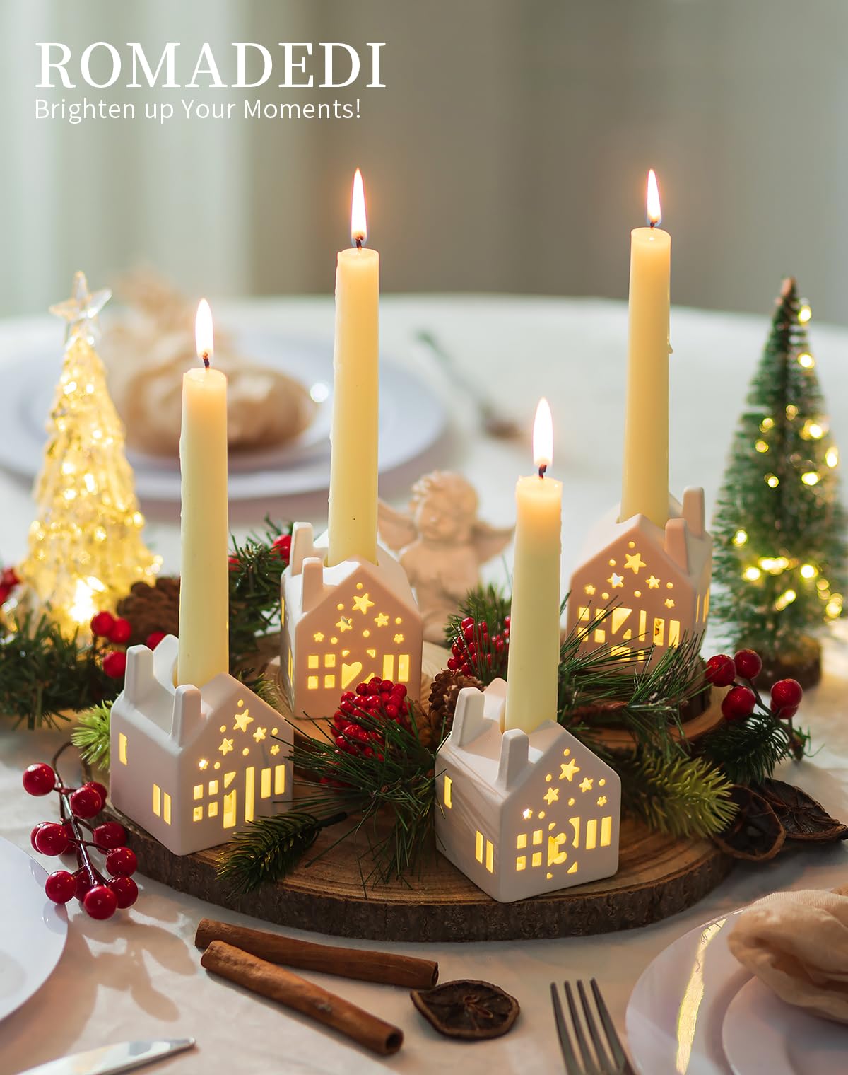 Romadedi Lichthaus LED en céramique blanc Après un examen approfondi et une mise en situation concrète, il est temps de synthétiser les caractéristiques de ce lot de photophores Romadedi. La qualité de fabrication, la sécurité d'utilisation et l'élégance du design sont les points forts qui ressortent de ce test Céramique Translucide éclairage LED Lot De 4 Photophores LED En Céramique Avec Chiffres De 1 à 4 Couronne De L'avent Avec 4 Bougies Céramique translucide avec éclairage LED : le matériau produit une lueur douce et uniforme et diffuse une atmosphère chaleureuse. Marqué avec les chiffres 1 à 4, ils sont parfaits comme calendrier de l'Avent et renforcent le compte à rebours de Noël. 4 photophores led à chiffre, pour une déco lumineuse étonnante... Double utilisation festive : les motifs de maison de Noël créent une atmosphère festive. Décoration polyvalente : idéale pour diverses scènes de décoration festives et quotidiennes, telles que sous le sapin de Noël, près de la cheminée, sur le rebord de la fenêtre ou dans le village de Noël. Idéal comme cadeau de Noël, cadeau de pendaison de crémaillère ou attention festive. Accessoires d'intérieur parfaits pour les étagères, les plateaux, les plantes ou les figurines de rennes - S'intègre facilement dans différents styles de décoration.