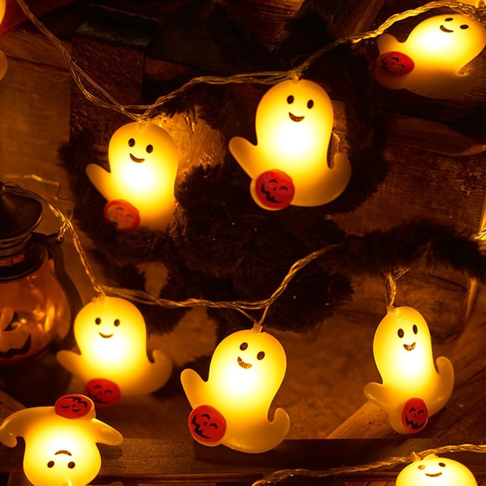 Décoration Halloween Lumineuse Guirlande Lumineuse à 10 LED Fantômes à Piles, 8 Modes D'éclairage Guirlande Flexible Fête Thème Guirlande Lumineuse Halloween 3M 20 LEDs USB Décoration Style fantôme pour illuminer la nuit d'Halloween]Le guirlande lumineuse halloween contient 20 perles lumineuses LED et mesure 3 mètres/9,8 pieds de long, créant une atmosphère d'Halloween effrayante et amusante pour votre balcon, votre chambre ou votre fête.[Design amusant]Le guirlande lumineuse halloween fantôme combine des motifs classiques d'Halloween tels que des fantômes... Spécifications : Matériau : plastique Longueur : 3 m Couleur : lumière chaude Contenu : 1 x guirlande lumineuse halloween (piles non incluses) Remarque : Piles non incluses, prévoir 3 piles AA. ✨👻【Style fantôme pour illuminer la nuit d’Halloween】Le guirlande lumineuse halloween contient 20 perles lumineuses LED et mesure 3 mètres/9,8 pieds de long, créant une atmosphère d'Halloween effrayante et amusante pour votre balcon, votre chambre ou votre fête. ✨👻【Design amusant】Le guirlande lumineuse halloween fantôme combine des motifs classiques d'Halloween tels que des fantômes, des démons, des citrouilles, etc. Modes d’éclairage : fixe, clignotement lent ou rapide., 3., Facile à utiliser : Chaque LED est reliée par un fil de cuivre transparent, très flexible et modelable à volonté. ✨👻【Utilisation polyvalente】Qu'il s'agisse d'une cour, d'un patio, d'une porte, d'un porche, d'une fenêtre, d'une cheminée, d'une chambre, d'un salon, d'une salle de classe ou de n'importe quel endroit à l'intérieur et à l'extérieur, aucune prise n'est requise ; cette chaîne de halloween lights peut devenir le centre d'intérêt et créer facilement une atmosphère d'Halloween. À placer partout, en intérieur comme en extérieur. Pratique et décoratif, parfait pour les fêtes d’Halloween, soirées effrayantes ou fêtes de sorciers. Bienvenue dans notre boutique !Guirlande lumineuse Halloween : La guirlande lumineuse mesure 3 m de long et est composée de 20 LED mignonnes en forme de citrouille. Sa forme de citrouille souriante est idéale pour créer une atmosphère effrayante et joyeuse dans toutes sortes de scènes spéciales, notamment Halloween, les fêtes d'horreur et le cosplay.Étanche et sûr : Grâce à ses LED...