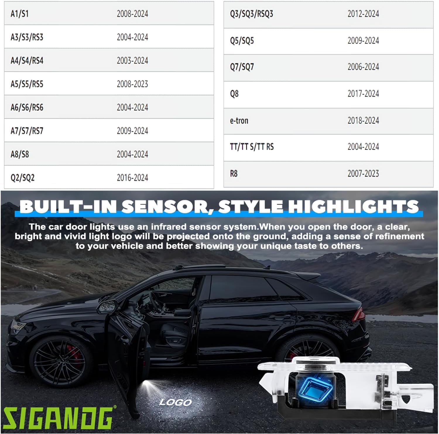 Lorsque vous ouvrez la portière de votre voiture, un logo clair et lumineux est projeté sur le sol. Gmili Projecteur Logo Audi Portière - Éclairage LED Voiture Compatible A1 A3 A4 A5 Q5 Q7 1023636 🚕Facile à installer : Plug and Play, le projecteur de logo d'éclairage de porte adopte la dernière puce de circuit de décodage de voiture et n'entre pas en conflit avec le logiciel de la voiture. Projecteur Lumière Portière Audi 4 Pièces LED Lumière De Projecteur De Voiture, Eclairage Porte Pour A1 Accessoire Audi A3 Lentille en quartz Le verre de quartz a une très bonne stabilité thermique, peut résister à de fortes fluctuations de température et ne se décolore pas après une longue période d'utilisation. Vous pouvez montrer votre hospitalité à vos partenaires commerciaux, amis et famille. runfusio 4 pièces LED Projection Logo de Voiture Luière... 🚕 Structure sûre et stable : la conception à quatre boucles double face améliore la stabilité de l'installation et la résistance globale du corps de l'éclairage de porte à LED. La lumière traverse le film haute définition résistant à la chaleur. Présentation du produit 4 Pièces LED Lumière de Projecteur de Voiture, Eclairage Porte pour A1/A3/A4/A5/A6/Q3/Q5/Q7/A7/A8/R8/TT, Lumière de Porte de [Qualité HD] L'éclairage de porte utilise des perles de lampe LED à haute luminosité 🚕Qualité d'image haute résolution : l'éclairage du panneau de porte adopte des perles de lampe LED haute luminosité. Il illumine le sol avec un tout nouvel effet, rappelant non seulement aux véhicules derrière de faire attention à la sécurité, mais peut également être utilisé comme éclairage de flaque d'eau. Ses caractéristiques sont un rendement lumineux élevé et une faible consommation d'énergie. Résistance aux températures élevées Fabriqué en PVC ignifuge de haute qualité, il offre des performances sûres et stables. Pas besoin de percer, pas besoin de démonter d'autres pièces, utilisez simplement un outil de perçage pour retirer l'éclairage de porte d'origine et le remplacer.