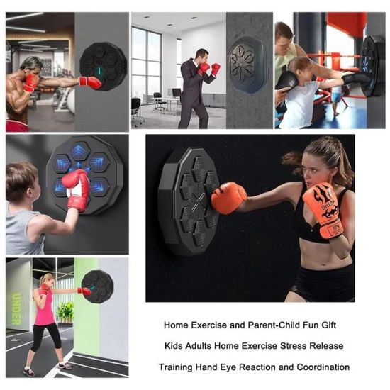Avec 9 modes d’entraînement et des niveaux de difficulté réglables, elle convient à tous les âges et tous les niveaux, que ce soit pour améliorer vos réflexes, développer votre endurance ou simplement vous défouler. ADSAQOP Machine de Boxe Musicale, Mural Professionnel Entraîneur de Boxe Électronique Bluetooth avec 9 Vitesses et Modes, avec Gants, Adultes et Enfants de Boxe pour Le Gym et la Maison 【Rechargeable & durable】 La batterie lithium 1200 mAh offre 2+ heures d’utilisation continue avec recharge rapide Type-C. Machine De Boxe Musicale Enfant Music Boxing Machine Bluetooth Intelligente LED Punching Ball Mural Entraînement Boxe Meilleur Boxing Machine Son dos adhésif puissant permet une installation sans outils et sans abîmer vos murs – idéale pour les home gyms, garages ou salles de jeux. Personnalisez vos sessions avec 30 niveaux de volume et un retour LED dynamique pour une expérience immersive. Machine de boxe murale - MOOHOP - Modèle musical - 40cm - Bluetooth... Se retire proprement – parfait pour les locataires ou les installations temporaires. Idéal pour jumeler avec des apps de fitness. Music Boxing Machine, 9 Modes Cible Boxe Mural Musique avec Gants de Boxe, Comptage Intelligent et Bluetooth Musicboxing, Noir. 40,00 € · Machine De Boxe... 【Kit de boxe complet inclus】 Votre achat inclut une paire de gants de boxe premium (ajustables) – tout ce qu’il vous faut pour commencer l’entraînement immédiatement avec une protection totale des mains. Compacte, stylée et durable – cette cible de boxe combine parfaitement musique, mouvement et motivation ! 【9 modes d’entraînement + 30 niveaux de volume】 Défiez-vous avec des réglages de difficulté variés, du débutant à l’expert. Dotée de six coussinets résistants en PP et TPR fixés sur un panneau acrylique élégant, cette cible offre une expérience d’entraînement réactive et durable. 【Design mural économique】 Notre installation adhésive se fixe solidement sans outils ni dommages.