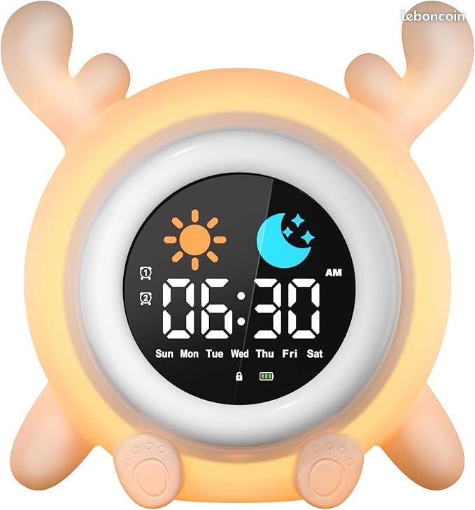 【Maître du temps】Notre réveil en forme de poire peut régler l'heure, le compte à rebours peut rappeler avec précision l'heure des devoirs, et un bouton peut facilement régler l'heure de l'auto-test d'apprentissage. 【Design en forme de poire】Les grands yeux en forme de poire, en demi-pointe, en pointe, auront des expressions mignonnes. 【Batterie de grande capacité】Le réveil peut durer environ 20 jours sur une seule charge, ce qui rend l'expérience plus sans tracas. Trois groupes de réglages de réveil pour enfants, fonction de répétition de l'alarme, temps de planification raisonnable. Réveil Numérique - Non spécifié - Modèle Enfant - 7 Couleurs - Volume Un tel réveil aidera nos enfants à développer de bonnes habitudes. Sommeil intime, libre de régler le volume, adieu d'être réveillé par le réveil de chevet. Ajustement gratuit]Le réveil a 6 groupes de sonneries pour changer librement, le niveau de volume comme vous le souhaitez. Sommeil intime, libre de... 【Ajustement gratuit】Le réveil a 6 groupes de sonneries pour changer librement, le niveau de volume comme vous le souhaitez. Caractéristiques : 【Ajustement gratuit】Le réveil a 6 groupes de sonneries pour changer librement, le niveau de volume comme vous le souhaitez. La luminosité peut être réglée la nuit pour éviter de perturber votre sommeil. Réveil Jour Nuit Température MONODEAL Réveil Enfant Lumineux LED, Réveil En USB Charge, Reveil Fille - Pattay Réveil Abs Silicone Sécurité Un réveil tout en douceur pour vos enfants grâce à nos modèles ludiques et éducatifs, le choix parfait à ajouter à votre sélection cadeau naissance ou à offrir en cadeau anniversaire pour accompagner les premiers matins Laissez-vous réveiller confortablement le matin et vivez une journée parfaite, adaptée aux adultes et aux enfants.
