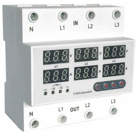 Stabilisateur De Courant AC230V 63A Monophasé Double Affichage LED Tension Et Courant Réglables Réglage Valeurs Délais Auto-rétablissement Guía Completa de Protectores de Voltaje: Tipos, Funciones, Aplicaciones Protecteur de tension automatique Zubr D2-50, relais de surtension... Lorsque des défauts de surtension, de sous-tension et de surintensité se produisent dans la ligne, le regulateur de tension protection peut immédiatement couper le courant pour éviter que l'équipement électrique ne brûle. Lorsque la ligne revient à la normale, il peut la reconnecter automatiquement. 【Ecran couleur haute définition】:Dispositif de protection contre les surtensions et les sous-tensions est équipé d'un écran couleur haute définition à LED, qui affiche en temps réel des paramètres tels que la tension, le courant, la puissance, le facteur de puissance et la fréquence, et fournit des résultats de mesure clairs et faciles à lire. Paramètres : Matériau : PC Tension nominale : AC 230V Courant nominal : 63A Tension d'entrée : AC 140-300V Valeur de protection contre les surtensions : 230-300V (par défaut 270V) Valeur de protection contre les sous-tensions : 140-210V (par défaut 170V) Valeur de protection contre les surintensités : 63A (par défaut 40A) Valeur de rétablissement des surintensités : 0,5-62,5A Délai de rétablissement : 1-500 sec. L'interface visuelle améliore l'expérience de l'utilisateur. 【Auto-répétition réglable】:Protecteur de tension de courant réglable valeur de protection,ainsi que le temps de peuvent être réglés par l'utilisateur en fonction de ses besoins. 【Large application】:Protecteur de courant tension est principalement utilisé dans la ligne de distribution d'électricité de la famille, du dortoir de groupe, de l'électricité industrielle, des centres commerciaux, etc. Il surveille les surtensions, sous-tensions et surintensités, et peut couper l'alimentation électrique immédiatement en cas de problème, protégeant ainsi vos équipements électriques. Il se réinitialise automatiquement lorsque la tension revient à la normale, assurant une protection continue