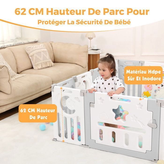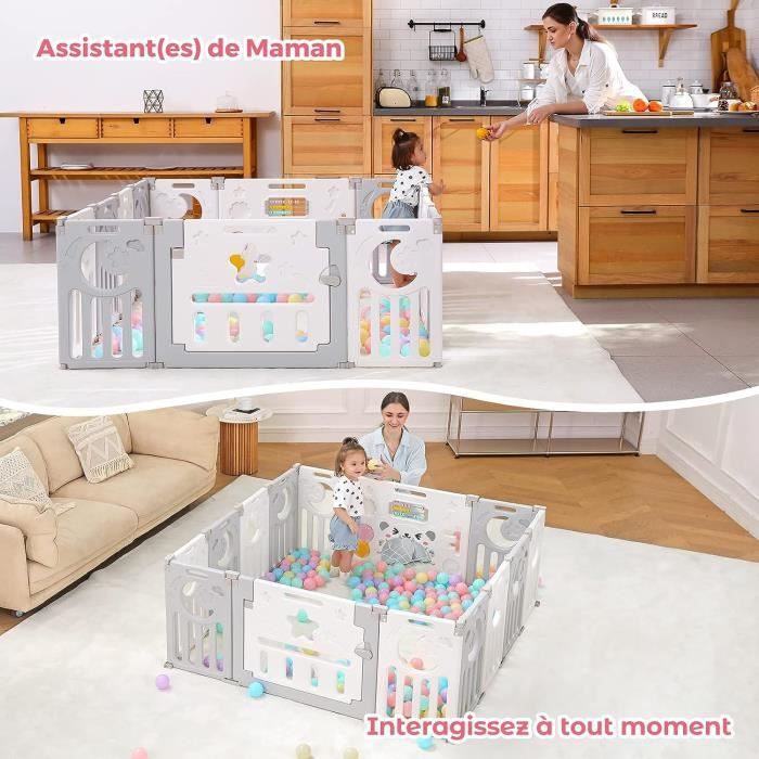 Sa maille respirante et transparente assure une bonne circulation de l'air tout en vous permettant de surveiller votre petit explorateur Facile à installer et pliable, il est idéal pour une utilisation en intérieur comme en extérieur, offrant à votre bébé un espace pour jouer, explorer et grandir, tout en profitant de moments en toute liberté. Espace de jeu sécurisé : Le parc bébé compact de 120 x 120 cm (dimensions intérieures) offre un espace de jeu sécurisé aux bébés de 6 à 24 mois. Dimensions extérieures : 1270 x 1270 x 695 mm Plusieurs fonctions de sécurité Laissez votre tout-petit jouer en toute sécurité et profitez de la tranquillité d'esprit. Housse en tissu amovible et lavable Notre barrière de jeu pour bébés et tout-petits est dotée d'une housse amovible en tissu Oxford 210D lavable en machine, pour un nettoyage facile et sans tracas. Remarque : le tapis de jeu n'est pas inclus ; veuillez le préparer séparément. Caractéristiques principales Parc pour bébé Spécialement conçu pour les bébés de 6 à 24 mois, ce parc bébé compact et protecteur de 1 200 x 1 200 mm est idéal pour la chambre, l'extérieur et bien plus encore. Conception humanisée Avec du coton élastique doux, une porte de sécurité avec fermeture éclair extérieure et des ventouses solides, ce parc pour tout-petits intérieur et extérieur offre un espace sécurisé et amusant à explorer pour votre bébé. Ce parc pour bébé est doté d'une hauteur étudiée pour l'empêcher de grimper, d'une structure sans espace pour éviter les pincements de doigts et d'un filet respirant pour une circulation d'air et une visibilité optimales. YOLEO Parc Bébé Modulable : L'aire de jeu idéale pour votre enfant - Le... Attention : Le tapis de jeu n'est pas inclus ; veuillez le préparer séparément Matériau de haute qualité : Fabriquée en tissu Oxford 210D sans BPA, cette barrière de jeu pour bébés portable est durable, résistante aux déchirures et sans danger au toucher. Conception compacte et pliable Son design pliable facilite son rangement : il suffit de le replier lorsqu'il n'est pas utilisé. Spécification Numéro du modèle de l'article : P2001-1 Poids net : 19,62 lb / 8,9 kg Parc Bébé pliable et modulable 75cm 3m env. (Gebraucht) in Couvet für Personnalisez votre forme : Ce parc enfant est modulable et peut être disposé en cercle, en carré ou en L. Description :Jouer en toute sécurité, découvrir avec joie – avec le joli parc pour bébés en forme de panda !Ce parc pour bébés au design panda, conçu avec soin, fait non seulement briller les yeux des enfants, mais rassure également les parents 1 x clé hexagonale en L Aire De Jeu Sécurisée Bébé YOLEO Parc Bébé Modulable : L'aire De Jeu Idéale Pour Votre Enfant - Le Barrière Jeu Bébé Solide et stable : Équipé de ventouses puissantes, de tubes en fer épais et de connecteurs durables, ce parc bébé modulable pliable reste bien en place sans bouger ni basculer, assurant la sécurité de votre enfant pendant qu'il joue et explore. 8 x tubes surround supérieurs Dimensions extérieures : 50 x 50 x 27,36 pouces / 1270 x 1270 x 695 mm Compact et facile à ranger, ce parc pour bébés et tout-petits est idéal pour les sorties en plein air, la plage, le parc ou les visites en famille. Portable et facile à assembler : En seulement 3 étapes simples, ce parc d'activités pour bébés et tout-petits se plie facilement à une taille compacte, ce qui le rend facile à ranger dans le coffre de votre voiture et à emporter avec vous pour les voyages en plein air - que vous vous rendiez au parc, à la plage ou que vous rendiez visite à la famille