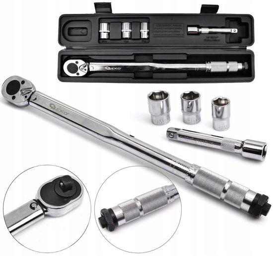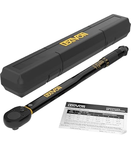 Qualité : dispose d'une poignée en aluminium aérospatial avec une poignée moletée antidérapante, d'un mécanisme coulissant pour des ajustements sécurisés du couple et d'une pochette de protection rembourrée à coque rigide. - Tête à cliquet : Cr-Mo, engrenage 72 dents, double direction. Cle Dynamometrique 1/4 LEXIVON Clé Dynamométrique Pour Vélo De 6,35 Mm, Newton Meter étui Protection Et Transport Précision : cette clé dynamométrique pour vélo est pré-calibrée à /- 4 % dans le sens des aiguilles d'une montre et /- 6 % dans le sens contraire des... - Poignée rotative : alliage d'aluminium. La clé dynamométrique LEXIVON à 72 dents double direction est l'outil parfait pour des réparations de vélo précises, durables et fiables. Caractéristiques : - Portée : 2 à 26 Nm. Innovation : l'échelle à double gamme jaune sur noir garantit une visibilité dans des conditions de faible luminosité, tandis que le mécanisme de poignée breveté réduit la fatigue de la main jusqu'à 62 %. - Finition : noir électro-noir. Précision fiable : chaque clé est soumise à des tests rigoureux, y compris trois contrôles d'étalonnage distincts, et est livrée avec un certificat d'étalonnage signé par le mécanicien de test et un numéro de série traçable. Durabilité : cette clé de vélo est construite avec une tête à cliquet en chrome-molybdène traitée thermiquement et une finition électro-noire pour résister à la rouille et à la corrosion. Notre échelle exclusive à double gamme combine des marques jaunes audacieuses sur un fond électro-noir brillant, assurant une visibilité même en cas de faible luminosité. La compatibilité de clé n'est pas basée sur la marque, le modèle ou l'année du véhicule. Lorsque vous retirez vos écrous de roue, il est préférable de desserrer uniformément chaque écrou sur la roue plutôt que de le retirer complètement un à la fois, cela aide à réduire la pression sur les écrous restants Précision : cette clé dynamométrique pour vélo est pré-calibrée à +/- 4 % dans le sens des aiguilles d'une montre et +/- 6 % dans le sens contraire des aiguilles d'une montre pour une précision fiable. Pratique : comprend un cliquet réversible à 72 dents avec un arc oscillant de 5 ° pour manœuvrer dans les espaces restreints et un bouton de dégagement rapide pour des échanges rapides de prises. Construction durable : cette clé de vélo est construite avec un corps entièrement en acier sans plastique pour une fiabilité maximale et comprend une poignée moletée antidérapante pour plus de confort et de contrôle. LEXIVON Clé dynamométrique 1/2 Drive Click 25-250 Ft-Lb/33.9-338.9 Nm (LX-184