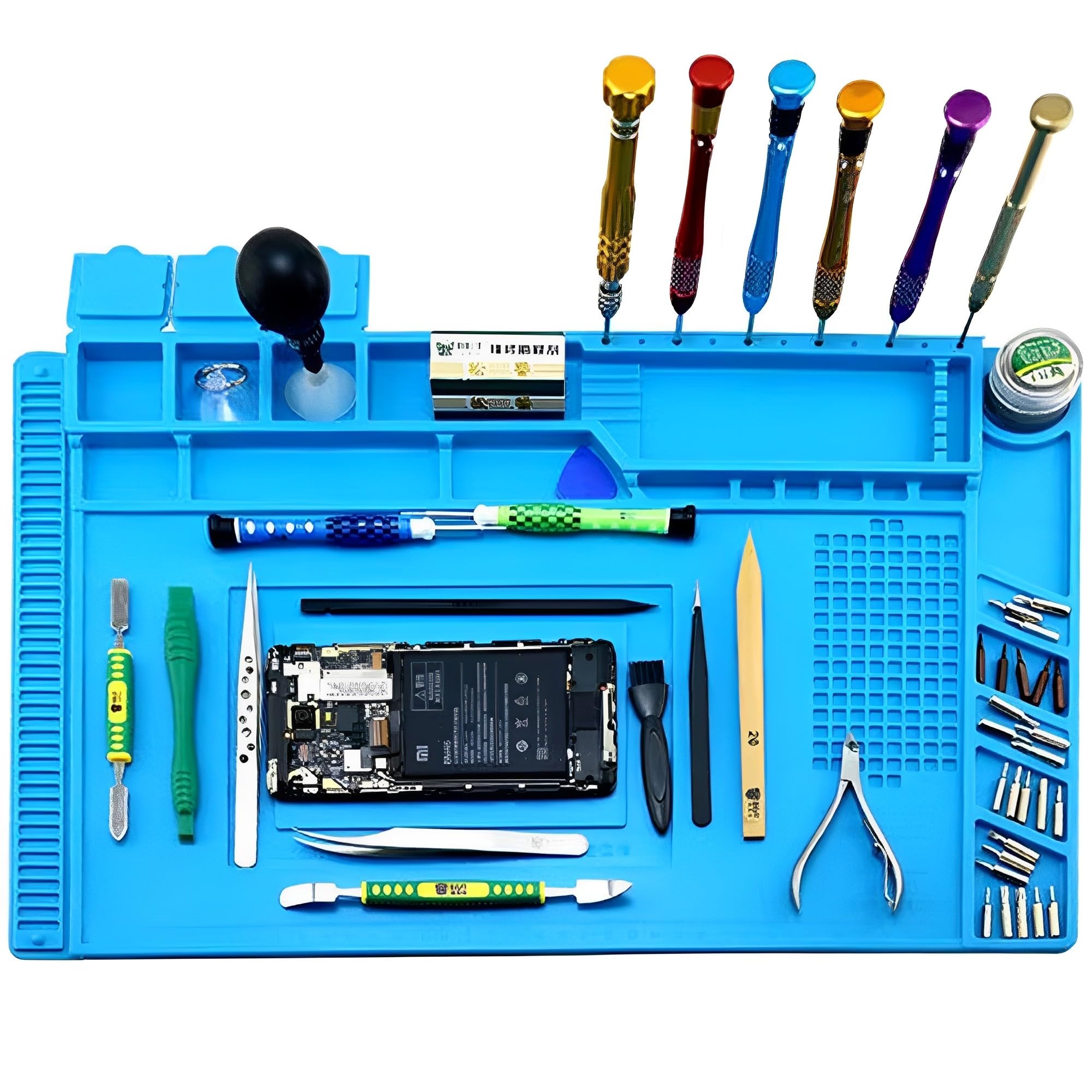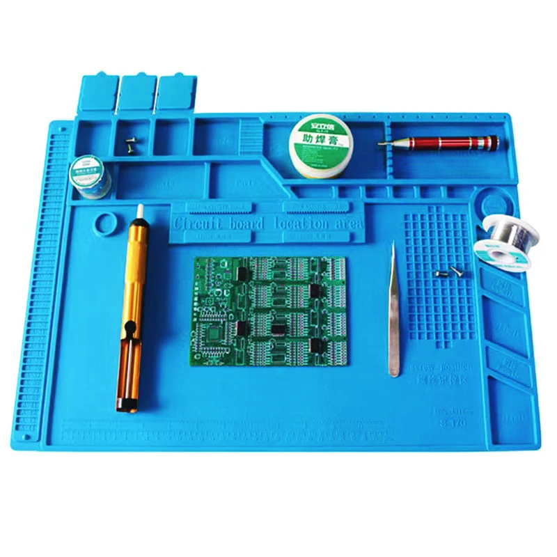Tapis de travail en Silicone à isolation magnétique, résistant à la chaleur, pour soudage... Conception conviviale, toucher confortable, anti-corrosion, résistance aux hautes températures, multifonction. Fabriqué en silicone de qualité supérieure, avec une bonne isolation thermique et une résistance aux températures élevées. Tapis Anti-chaleur électronique Tapis En Silicone Bleu S-160 Résistant à La Chaleur, Tapis De Travail Pour Soudage BGA, Réparation De Pièces De Téléphone Portable, Carte Mère D'ordinateur Portable, Coussin En Silicone Caoutchouc Station Démontage Téléphone Pc Un outil idéal pour souder l'assemblage électronique ou la réparation d'électronique et de circuits imprimés, par exemple un téléphone mobile, un ordinateur portable, un ordinateur, un jouet intelligent, etc. Tapis en Silicone, 3 couleurs avec tapis à vis mag... – Grandado Convient à toutes sortes de tests et de maintenance de cartes mères numériques, pour répondre aux différents besoins de travail de la maintenance de l'industrie de l'électronique de communication. Tapis isolant thermique en silicone professionnel | Tout pour Phone