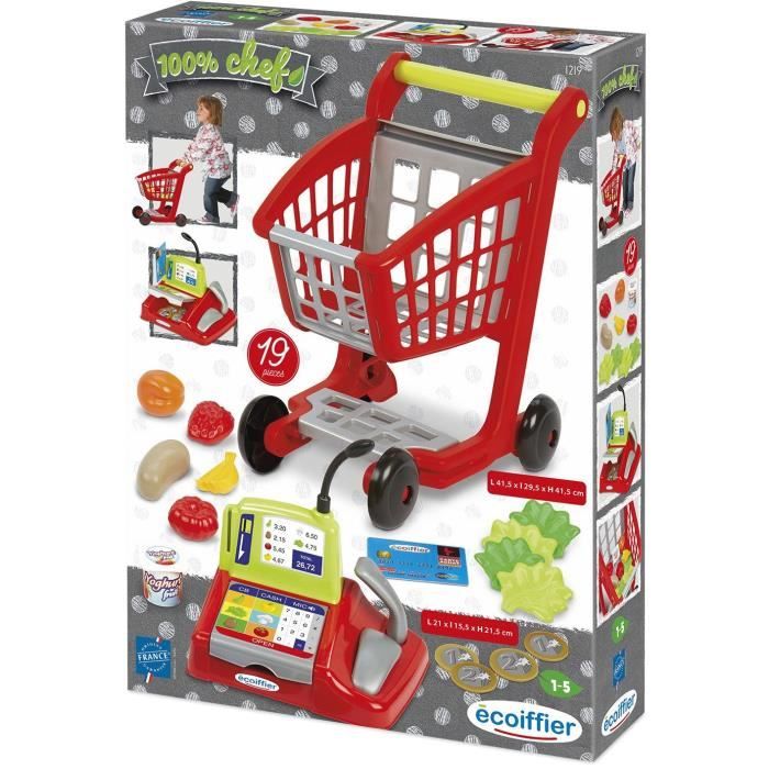Caisse Enregistreuse 100% Chef-26 Accessoires - Dès 18 Mois-Fabriqué en... JOUER POUR MIEUX GRANDIR : C'est en imitant les adultes et en manipulant différents jouets que les enfants apprennent à appréhender le monde qui les entoure, à devenir plus habile et plus autonome au quotidien. DES JOUETS ORIGINE FRANCE GARANTIE : Jouets Ecoiffier est une entreprise familiale qui fabrique tous ses jouets en France. Accessoires Marchande Enfant La Plancha + 12 Accessoires Inclus, Jeu D'imitation, Outillage De Jardin Pour En Jeu éducatif Imitation Enfant Ecoiffier UN VRAI PETIT MAGASIN : Avec ses différentes étagères bien remplies et sa caisse enregistreuse, cette marchande est une véritable petite boutique pour que les bambins puissent faire leurs courses comme les grands. Promo Chariot Garni Avec Caisse Enregistreuse écoiffier chez Carrefour... Description du produit Une caisse de supermarché remplie de produits à acheter, une carte bleue, un micro, un terminal CB, une balance pour les fruits et légumes et un panier roulant vient s’ajouter une caisse enregistreuse mécanique garnie de pièces et de billets, d’un lecteur de gencode, d’un téléphone et d’un micro., 31 pièces., Dès 18 mois. Ecoiffier Stand du maraîcher - Comparer avec