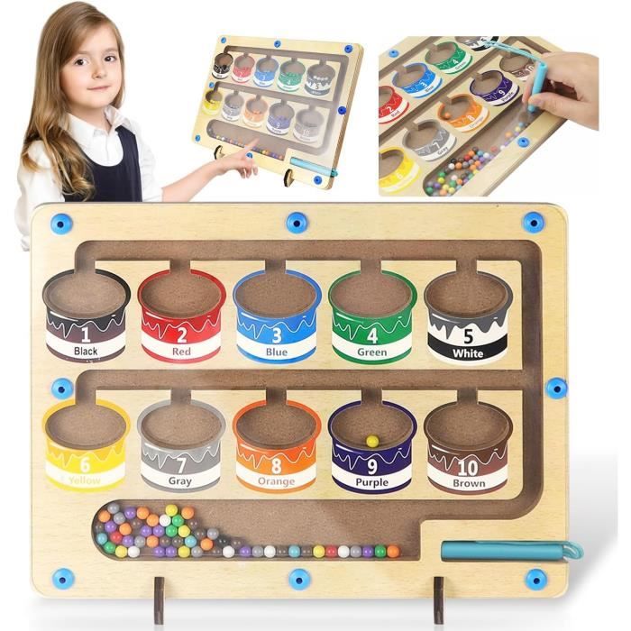 Personnes Concernées: Les jouets Montessori peuvent aider les enfants à rester à l'écart des appareils électroniques, à exercer leur attention et sont très adaptés aux enfants d'âge préscolaire, permettant aux enfants de s'amuser grâce à des jeux classiques Labyrinthe magnetique tangram 3 en 1 pour enfant Jeu De Tri Et Comptage Enfants Test : Labyrinthe Magnétique Montessori Pour Enfants Jouet 2-6 Ans Apprentissage Les enfants peuvent déplacer la balle le long de la piste jusqu'à la zone correcte en fonction de la correspondance des nombres et des couleurs, favorisant ainsi la reconnaissance des couleurs, la coordination œil-main et la pensée critique des enfants La face avant est en matériau acrylique transparent d'une grande clarté. Jeux Labyrinthe Magnetique Enfant Jouet Bois Parcours de Motricité Fine... Matériau Durable: Le fond du jeu de labyrinthe magnetique enfants est fabriqué en bois avec une surface lisse et des bords arrondis. Le stylo magnétique doit être utilisé à proximité du panneau acrylique pour absorber les petites boules, afin que les enfants puissent exercer pleinement leur coordination œil-main pour que les enfants ne s'ennuient pas Mode d'Emploi: Lorsque vous utilisez des jeux labyrinthe magnetique, afin d'éviter d'adsorber plusieurs balles à la fois, veuillez ne pas les utiliser à plat.