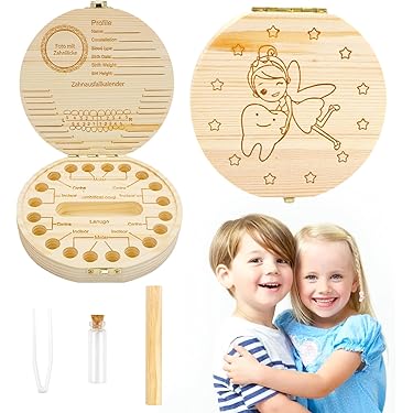 Rangement Dents Enfant Boîte Souvenir Dents De Lait En Bois - Mémoire Croissance Enfant Garçon/Fille Boîte Rangement Dents De Lait Bois Personnalisable Enfant Souvenir Son boite dents de lait design plat permet de gagner de la place et d'éviter la perte de vos souvenirs les plus précieux Boite A Souvenir Boîte à Dents De Lait En Bois, Boîte De Rangement Pour Dents Boite A Dents De Lait Fille Il tient dans la paume de la main et se glisse facilement dans le sac ou le tiroir de la maman. Matériau de qualité]Notre boîte de rangement des dents est fabriquée en bois naturel de qualité et permet un stockage à long terme des dents, solide et durable, difficile à déformer et à porter Boite a Dents de Lait, Boîte de Rangement pour Enfants en Bois de Souvenir, Boîtes à Dents Pour Enfants Pour 20 Dents, Boîtes en Bois pour Ranger les Dents... 【Mode D'emploi】Avant de ranger la dent, faites-la bouillir pendant environ 5 minutes pour la stériliser, puis essuyez-la. 【Design Personnalisé】Chaque dent dispose d'un espace de rangement séparé. Placez-la ensuite dans la grille prévue à cet effet dans la boîte en bois pour un stockage permanent 【Matériau de Haute Qualité】Boite a dents de lait fabriqué en bois non toxique et respectueux de l'environnement, il est sûr et inoffensif, protégeant efficacement les dents de lait des dommages causés par l'environnement. En plus de ranger les dents de lait, il offre également un espace généreux pour une touche personnalisée. Nom du produit : Boîte à dents de lait Matériau : Pin Quantité : 1 Caractéristiques : 1., Bois de pin, résistant à l'humidité 2., Boucle magnétique 3., Personnalisable Contenu du colis : Vous recevrez une boîte à dents de lait en forme de dent pour filles et garçons