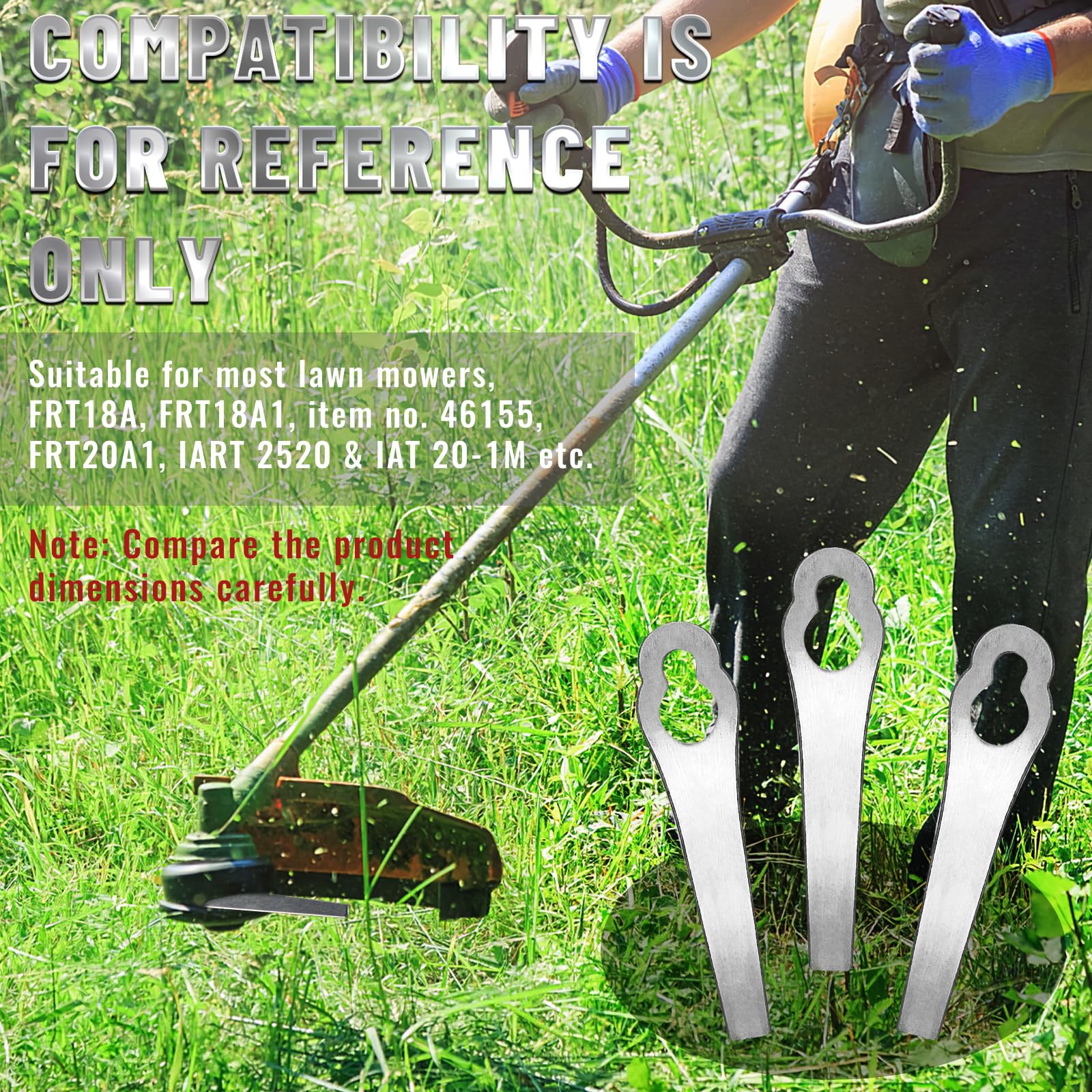 Lames De Rechange Pour Coupe-Bordure, 10 Pcs Lames Métal Coupe Bordure... ) Forfait : 10 x Lames de rechange pour coupe-bordure, 1., 【Matériau】Cette lame de coupe-herbe est en acier inoxydable, qui est plus solide et plus durable que le plastique ordinaire, la lame est finement conçue et le bord lisse assure la sécurité., 2., 【Taille】 La lames pour coupe bordure sans fil mesure 84 mm de long, 20 mm de large, 12 mm de diamètre pour le grand trou et 7 mm de diamètre pour le petit trou., 3., 【Applicable】 Cette lame de tondeuse à gazon sans fil convient à la plupart des tondeuses à gazon sur le marché, FRT18A, FRT18A1, Art 46155, FRT20A1, IART 2520 & IAT 20-1M, etc. (La compatibilité est à titre indicatif uniquement, veuillez comparer le taille soigneusement avant d'acheter., ) , 4., 【Facile à installer】Ces lames accessoires de coupe-herbe sont faciles à installer et à utiliser, aucun outil supplémentaire n'est requis et elles peuvent être rapidement remplacées en quelques étapes simples, vous permettant de tondre votre pelouse, votre jardin et votre terrasse sans effort., 5., 【Package】 Le paquet comprend 10 pièces de lames de tondeuse à gazon, assez pour que vous puissiez les utiliser et les remplacer. Lame Acier Inoxydable Lame Coupe Bordure, Shallyong Lot De 10 Lames De Rechange Pour Coupe Bordure Metal, Lame Tondeuse Gazon, Remplacement Des Lames De Strimmer D' Herbe Lame Acier Inoxydable 84mm Pour FRT18A FRT20A1 46155, FRT20A1, IART 2520 & IAT 20-1M., ., ., (La compatibilité est pour référence seulement, veuillez comparer attentivement les dimensions avant d'acheter. 24Pcs Lames de Rechange Coupe Bordure pour lame de coupe-herbe Stihl 🔧 Spécifications du produit : -- Nom : Lame de tondeuse à gazon -- Matériau : acier inoxydable -- Taille : longueur 84 mm, largeur 20 mm, diamètre du grand trou 12 mm, diamètre du petit trou 7 mm. Les lames de haute qualité facilitent la coupe!