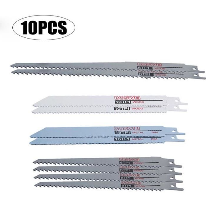 Lame Métal Tuyaux Profilés Lame Scie Sabre Bosch SabreCut SCRSK10BF Lot De 10 Lames De Scie Sabre 150 Mm 225 Mm 14 TPI S922BF S1122BF Pour Coupe Rapide Du Bois Et Du Métal Compatible Avec Bosch Scie Sabre Dewalt Découvrez nos offres Scie sabre pour couper du bois : large sélection de produits au meilleur prix | Livraison gratuite à partir de 10€* | Entreprise française | Paiement 4x possible Lame Scie Sabre Bosch Scie Sabre Dewalt 5 Lames Scie Sabre Bosch S 1122 HF - Pour Bois Et Métal - 225mm - Pas 2,5mm Scie A Metaux Lame Scie Metaux 【Multifonctionnel】 Lame de scie pour couper le bois, idéale pour le bois de chauffage/de construction ; lame métallique pour couper les tuyaux et les profilés WORKPRO Lame de Scie Sabre 5 Pièces, Accessoires de Scie Sabre pour... Ce jeu de 10 lames de scie est idéal pour couper les branches et le bois vert, avec des dents affûtées qui coupent dans les deux sens pour une coupe rapide et nette 【Jeu de 10 lames de scie】 – Ce jeu comprend dix lames de scie : huit pour le bois et deux pour le métal, qui garantissent des coupes nettes et précises. 【Matériau de haute qualité】Fabriquées en acier de première qualité, elles garantissent une longue durée de vie pour la coupe du bois et du métal. Jeu de lames de scie sabre