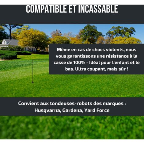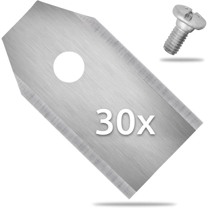 Matériau : acier inoxydable. Étant donné que les lames sont tranchantes, veillez à éviter les coupures lors du montage. Lames Titane Résistantes Lot De Lames Robot Tondeuse Husqvarna Destockage Grossiste Acier Inoxydable Titane 45 lames de rechange pour tondeuses à gazon Husqvarna / automatiques / Gardena / Yardforce Robot tondeuses (3g - 0,75 mm). En 1 fois. 19,78 €. Prix de... Large compatibilité : ces lames s'adaptent à la plupart des modèles de marques courantes. Fonctionnalités : Lame tranchante : cette lame de rechange pour tondeuse à gazon est fabriquée en acier inoxydable de haute qualité avec un bord tranchant qui coupe facilement les mauvaises herbes. Montage facile : ces lames de rechange pour tondeuse à gazon sont faciles à monter et se fixent facilement à la tondeuse avec les vis fournies. Ils conservent leur tranchant pour des coupes précises dans les pelouses humides ou denses Le changement de lame est un jeu d'enfant et permet une tonte rapide. La dureté et la ténacité élevées rendent la lame résistante à l'usure et résiste aux coupes intenses sans se casser. Contenu de l'emballage: 45 lames de couteau., 45 vis Elle ne rouille pas même dans des conditions difficiles et reste donc tranchante. Lame de robot tondeuse Les lames de robot tondeuse sont des pièces essentielles pour l'entretien de votre pelouse. Elles permettent une coupe nette et précise pour un rendu esthétique impeccable. Il est recommandé de changer régulièrement les lames pour garantir une tonte efficace et éviter d'endommager votre pelouse Spécifications: Nom : lames de couteau. Renforcé en titane : les lames de la tondeuse robot sont fabriquées en acier inoxydable revêtu de titane, résistant à la rouille causée par la pluie et les jus d'herbe. Résistante à la corrosion : cette lame de tondeuse à gazon est revêtue de titane et donc particulièrement résistante à l'humidité, à la pluie, au jus d'herbe et à divers produits chimiques. Lame Robot Tondeuse Parkside Lame Tondeuse Gazon HAUSPROFI Lot De 45 Lames De Rechange En Titane Ultra Tranchantes Convient Pour Tous Les Robots Tondeuses Husqvarna Gardena Yard Force Lames De Rechange Universelles
