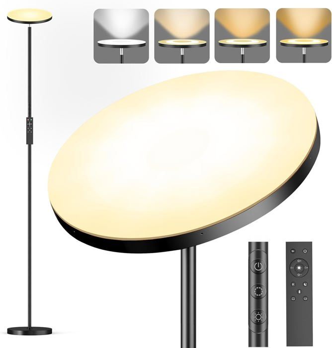 Base large, stable et peu encombrante La base de 30 mm de diamètre, 5 mm d'épaisseur et 2,7 kg de cette lampe la rend très stable et peu encombrante à la fois. EDISHINE Lampadaire LED En Bois, Lampe Sur Pied Salon 18W 3000K 800LM Dimmable Interrupteur A Pied Marron Style Boho Vintage 89805842 La télécommande magnétique peut être fixée au poteau ou au mur pour un rangement pratique et éviter de la perdre Lampe Salon EDISHINE Lampadaire LED Salon, Dimmable, 3000K, Interrupteur à Pied, Argent Lampe Sur Pied Réglable Hauteur Télécommande Pas seulement une télécommande Elle peut non seulement se fixer magnétiquement, mais également fonctionner comme un interrupteur mural après l'installation 1 Mode Veilleuse 2 Fonction de Minuterie 3 2 Méthodes de Contrôle EDISHINE Lampadaire sur Pied Salon avec Abat-jour Gradation en Continu: Grâce à l'ampoule LED dimmable incluse, vous pouvez régler en continu la température de couleur de 2700K à 6000K... La base lestée en métal chromé assure une stabilité fiable et prévient les basculements accidentels Que ce soit pour le travail, la lecture ou les loisirs, cette lampe salon peut créer un éclairage unique Gain de place : Grâce à sa conception verticale, cette lampe sur pied de salon optimise l'espace et ajoute de la praticité à votre intérieur pour exposer les collections, les plantes, les livres ou les décorations dans les coins étroits du salon, de la chambre ou du burea Le panneau LED émet une lumière ultra-brillante de 2500 lumens, éclairant chaque coin de la pièce [300° Rotatif & Super Lumineux] La tête du lampadaire sur pied pivote à 300° verticalement et à 300° horizontalement pour offrir le meilleur angle d'éclairage et répondre aux besoins personnalisés. [Télécommande & Bouton Tactile] Le bouton tactile sur le poteau et la télécommande avec une portée de 15 m offrent un contrôle flexible du lampadaire salon, que vous soyez près ou loin. Mode Veilleuse Lumière de 2700K 22LM crée une atmosphère de sommeil confortable et chaleureuse [Assemblage Facile & Base Stable] Aucun outil requis, installez la lampe sur pied de salon rapidement en connectant simplement la tête et les poteaux, avec une hauteur réglable de 114 cm à 193 cm.