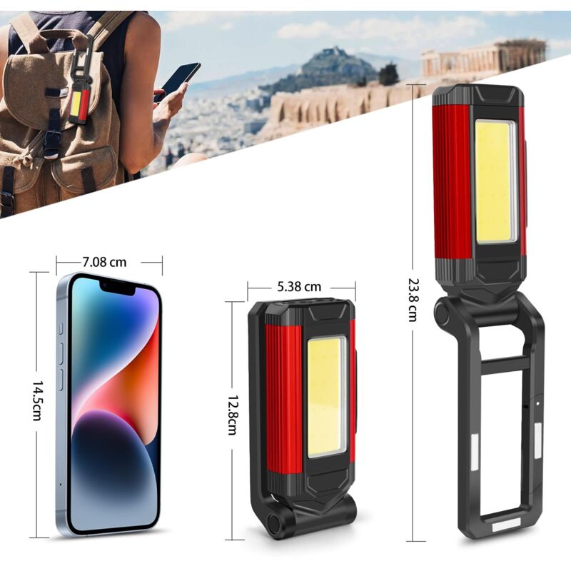 【Durable et étanche IPX6】Cette lampe LED magnétique est fabriquée en plastique ABS de haute qualité et en alliage d'aluminium, ce qui la rend extrêmement durable et étanche IPX6, résistante à la poussière, aux éclaboussures et aux chutes. L'aimant puissant se fixe facilement aux objets métalliques. Lampe De Travail Rechargeable Gbivbe Baladeuse LED Mecanicien, COB Lampe Portable Camping Urgences 2 lampes de travail LED avec 7 modes d'éclairage : chaque lampe de poche LED dispose de modes tels que brillant/faible/clignotant pour la LED... Les fonctions de suspension et magnétique libèrent vos mains, vous permettant de vous concentrer sur votre tâche. 1 ECLAIRAGELED XPE 2 PROJECTEUR COB 3 STROBOSCOPE ROUGE 【Base et crochet magnétiques】 Cette lampe LED magnétique est dotée d'un support pivotant à 360° et d'un crochet pliable à 240°, vous permettant de l'utiliser sous différents angles. Si vous avez des questions ou des suggestions après avoir reçu la lumière, nous trouverons une solution adaptée pour vous. Elle peut servir de source d'alimentation en cas d'urgence pour recharger d'autres petits appareils. 1 MAGNETIC BASE 2 HOOK-TYPE BASE, 1 240° ROTATION 2 360° HEAD ROTATION 【Lampe de travail portable polyvalente】 Cette lampe de camping portable est puissante et portable, se glissant facilement dans n'importe quelle boîte à outils. Avec une luminosité allant jusqu'à 1 000 lumens et une répartition lumineuse uniforme, cette lampe de travail LED assure un éclairage uniforme de toutes les surfaces. Lape de Travail Rechargeable Baladeuse LED ecanicien, 2 PCS Lape Led Rechargeable COB Lape... Elle fait également office de lampe torche avec une portée allant jusqu'à 100 mètres, répondant à vos divers besoins d'éclairage. Elle est idéale pour les réparations automobiles, l'éclairage d'atelier, le camping, la randonnée, les urgences ou pour un usage général. 【7 modes d'éclairage】Cette lampe de travail LED offre 7 modes d'éclairage : une lampe torche LED frontale (forte, moyenne et clignotante), une lampe latérale COB (forte, moyenne) et une lampe rouge COB (forte et clignotante). 2 X Lampe De Travail Cob Baladeuse Led Rechargeable Lampe Atelier Cob Torche Lampe De Poche Lampe De Travail Baladeuse Led Avec Base Magnetique Lampe Dinspection Pour Randonnee Campingde Debuns 86282120