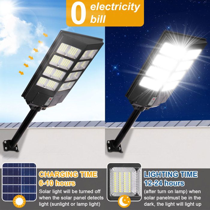 Lampes solaires à détecteur de mouvement pour l'extérieur : notre lampe solaire est équipée d'un capteur de mouvement sensible dont la portée de détection est de 7 mètres. Projecteur Solaire 6500K Grande Luminosité Lampe Solaire 600W, Capteur De Mouvement, Télécommande, éclairage Projecteur Led Extérieur Solaire Résistant aux intempéries à la chaleur/au froid extrême, aux orages et aux ouragans. Mode 2 : mode détecteur de mouvement, la luminosité atteint 100 % lorsqu'un mouvement est détecté et 30 % si aucun mouvement n'est détecté. Étanchéité IP66 et matériaux de qualité supérieure : les lampes solaires d'extérieur étanches avec détecteur de mouvement sont fabriquées en matériau ABS de qualité supérieure + support en métal. Il suffit de le fixer au mur/piquet en bois avec les vis fournies. Projecteur LED Solaire Extérieur 900 Lumens 6500K Autonomie 10h Lampe Son faisceau ultra grand angle de 320° couvre une surface de 2000 pieds carrés et assure une luminosité élevée et un éclairage de grande surface de vos espaces extérieurs. 【Plusieurs modes et télécommande】Mode 1 : mode crépuscule, l'éclairage s'allume automatiquement à la tombée de la nuit et s'éteint à l'aube. Capteur de lumière automatique : charge pendant la journée, s'allume la nuit. Mode 3 : télécommande avec éclairage programmé : 3 heures/5 heures/8 heures. La hauteur d'installation recommandée est de 2 à 3 mètres. Fabriquée en ABS résistant et avec un panneau solaire polycristallin, elle offre une protection IP65, garantissant une durabilité face à la pluie et à la poussière WERISE 900W Solaire Exterieur Lampadaire avec Detecteur de Mouvement, IP65 Étanche Projecteur Solaire Exterieur Puissant avec Telecommande, 6500K 1440 LED... Avec une puissance de 600W et 6500K lumière blanche, elle fournit un éclairage beaucoup plus lumineux que les lampes solaires traditionnelles. Panneaux solaires à haute efficacité et consommation d'énergie 0 : nos lanternes solaires sont équipées de panneaux solaires à haute efficacité (taux de conversion de 37 %). La luminosité peut être réglée via la télécommande. PEAKRO Lampes solaires d'extérieur avec détecteur de mouvement - 6500 K - Lampes solaires pour extérieur - Étanche IP66 - Télécommande - Éclairage solaire pour terrasse, rue, parking, garage, patio