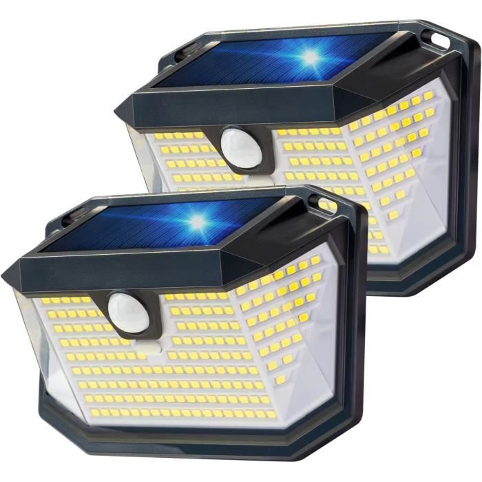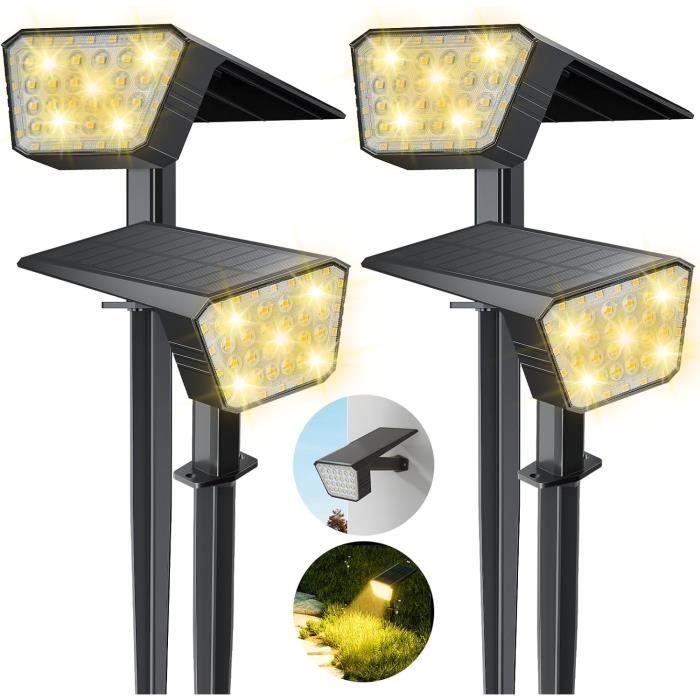 Spot Solaire Extérieur [Lot de 2] Lampe Solaire Exterieur 30 LED Installation facile comme spot solaire extérieur, lampe solaire LED ou lampe solaire extérieur jardin. Spot Solaire Jardin 100 LEDs Angle 270 GRIFEMA Lot De 2 Avec Détecteur De Lampe Solaire Extérieur Fabriquée en ABS robuste et IP65 étanche, cette lampe solaire extérieur résiste chaleur, gel et pluie. Recharge solaire efficace et capteur crépusculaire : La lampe solaire extérieur dispose d’une batterie de 800mAh qui stocke efficacement l’énergie solaire et fournit 8 à 10 heures d’éclairage après 6 à 8 heures de charge Lape Solaire Extérieur avec Détecteur de ouveent, 225 LED 3 odes... Durabilité & IP65 : Fabriquée en ABS robuste, cette lampe solaire jardin résiste chaleur, gel et pluie. LargeLarge angle de 270° : Avec 100 LEDs, ce spot solaire extérieur éclaire largement jardins, terrasses et allées, offrant visibilité et sécurité. Installation facile : Montage avec vis incluses, idéale comme spot solaire extérieur, lampe solaire LED, ou lampe solaire extérieur jardin. La lampe solaire extérieur détecteur de mouvement propose trois modes : détection (100% luminosité, extinction 20 s après), lumière faible + mouvement (10% → 100% → 10%), mode constant (capteur désactivé, allumée de crépuscule à l’aube à 30%), pour jardins, terrasses ou allées. Grâce à son capteur de lumière, l’éclairage extérieur solaire s’allume automatiquement la nuit et s’éteint le jour. La GRIFEMA GDK203-2 Lampe Solaire Extérieur offre un éclairage fiable pour jardins et espaces extérieurs.