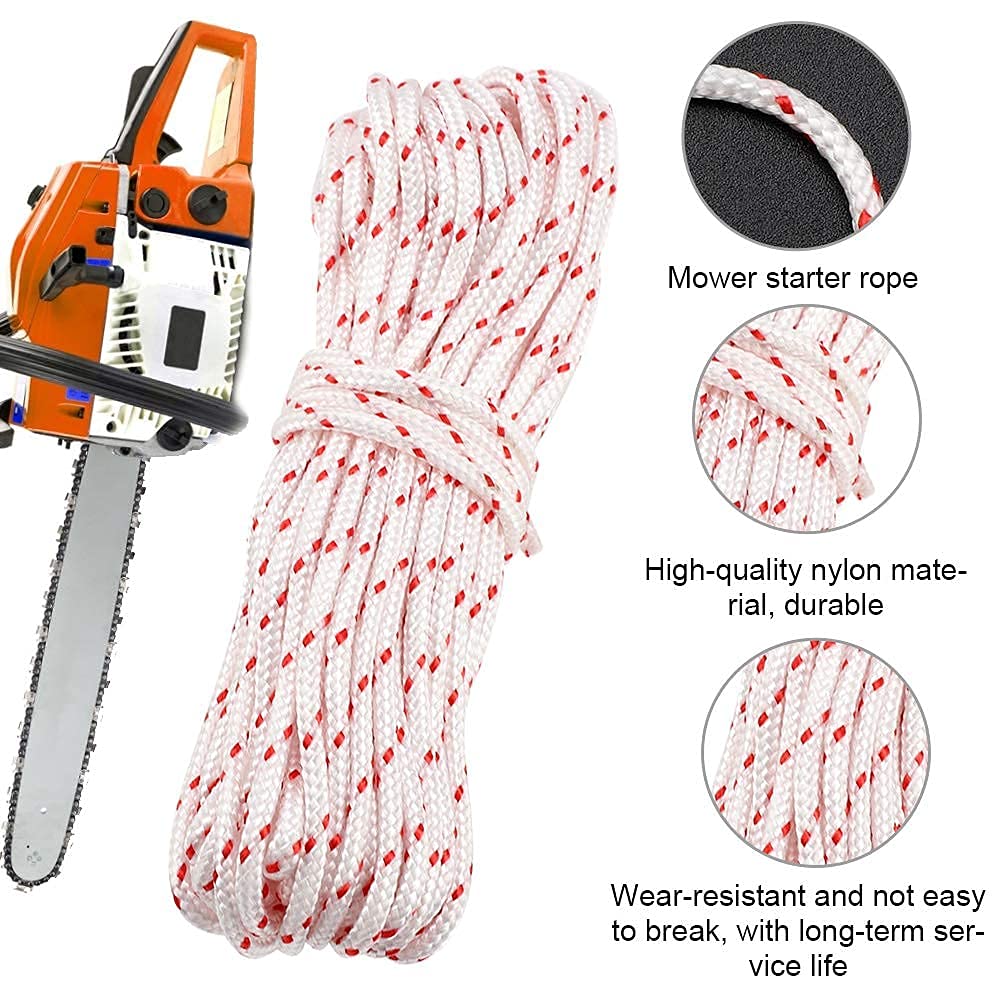 Corde Polyvalente Outils Jardin Cordon De Lanceur De Démarreur De Traction En Nylon De 10m Lanceur Tronconneuse Corde de lanceur 4.5 mm (longueur 1.8 m) - pièces de motoculture Corde et poignée de lanceur de démarrage 3.5 mm (longueur 0.9 m... Elles peuvent être utilisées pour les tondeuses à gazon, débroussailleuses, taille-haies, tronçonneuses, débroussailleuses, bordures de pelouse, pompes à eau, souffleuses à neige, mini-motoculteurs, cultivateurs, fendeuses de bûches, broyeurs, nettoyeurs haute pression, etc. [Utilisation polyvalente] - Cette corde de démarrage de tondeuse est universelle pour diverses applications. Elles peuvent être utilisées pour les tondeuses à gazon, débroussailleuses, taille-haies, tronçonneuses, débroussailleuses, bordures de pelouse, pompes à eau, souffleuses à neige, mini-motoculteurs, cultivateurs, fendeuses de bûches, broyeurs, nettoyeurs haute pression, etc APPLICATIONS DU PRODUITCette corde de démarrage de tondeuse est universelle pour diverses applications. [Conception fonctionnelle] - La corde de traction de tronçonneuse peut être facilement coupée en différentes longueurs, ce qui la rend plus pratique à utiliser. Elle peut remplacer complètement votre ancienne corde de démarrage cassée et faciliter le démarrage de votre moteur [Attention] - En raison de la lumière, la couleur et la taille seront légèrement différentes La corde de démarrage de recul est en polyester tissé, durable, à haute résistance et offrant une excellente absorption des chocs, elle présente une bonne résistance à l'usure et une résistance à la traction et peut être utilisée pendant longtemps