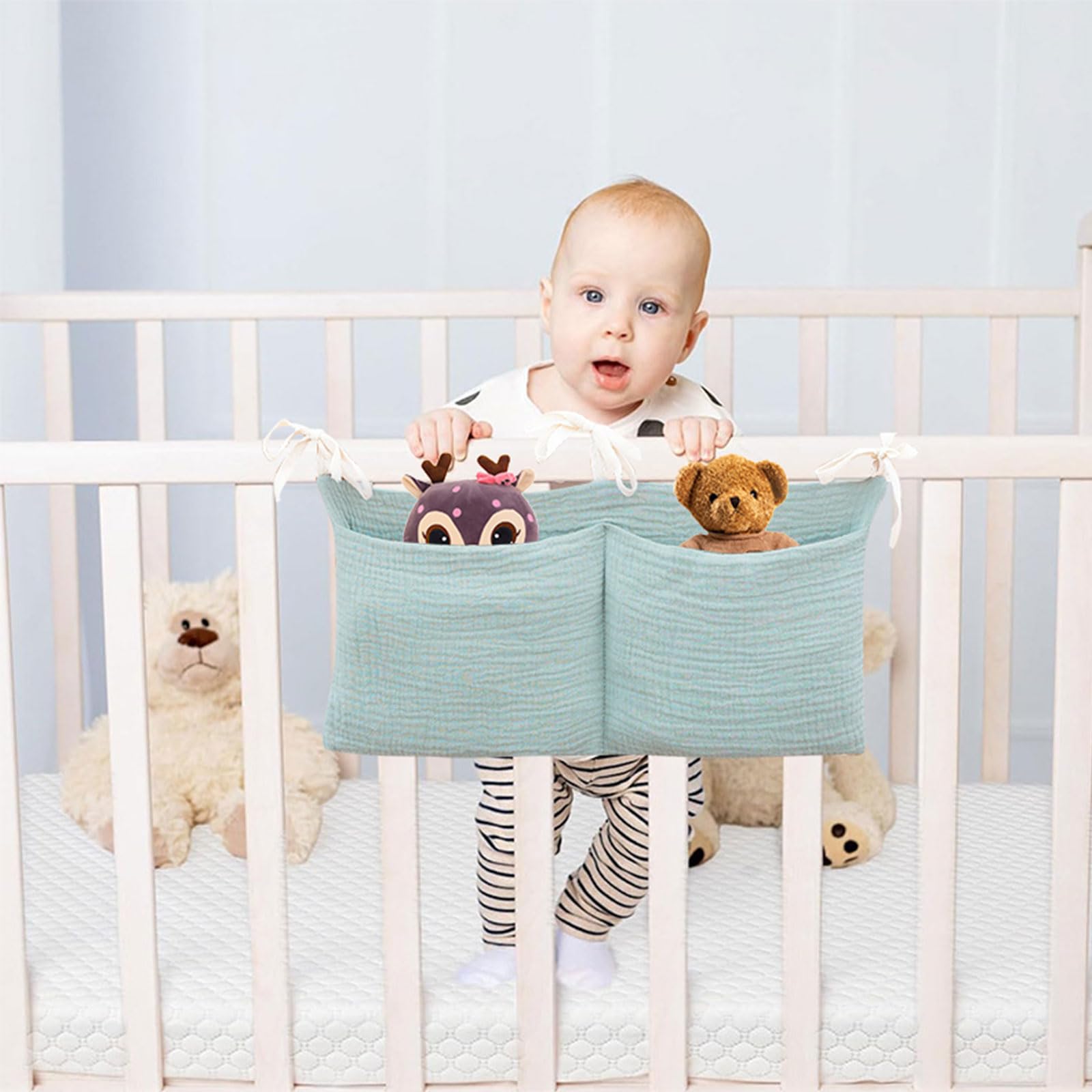 Corbeille Table A Langer A Suspendre TOFOAN Panier à Langer à Suspendre, Organiseur à Suspendre Pour Lit De Bébé, Organiseur à Couches Pour Berceau, Salle De Jeux, Table à Langer Ou Mur Pantry Couche Un excellent cadeau pour toute baby shower. Organiseur de couches à suspendre à côté du berceau, table de atelas à... La conception renforcée robuste assure la durabilité et est livré avec 2 crochets pour une installation facile. Spécification:Matériel: tissu OxfordTaille du produit: environ 43x26x1 8cm/16,93x10,24x7,09 poucesPoids : environ gListe de colisage:1 * organisateur de couches suspendu pour berceau ➳Commodité améliorée : simplifiez-vous la vie et gardez la chambre de votre enfant organisée grâce à l'espace de rangement abondant du support à couches pour une gamme d'articles, notamment des jouets, des mouchoirs, du lait en poudre et un grand nombre de couches. Avec son grand espace de rangement et son accès facile aux couches, pommades et bien plus encore, est parfait pour tout nouveau parent. ➳Gestion efficace des fournitures pour bébé : optimisez la fonctionnalité en organisant les couches, les pommades et les jouets tout en gardant les lingettes, les lotions, la poudre et les vêtements supplémentaires facilement accessibles pour un changement rapide et sans stress des couches. ➳Renforcé robuste : conçu pour la durabilité, ce porte-couches suspendu est renforcé pour résister à une utilisation intensive ; son matériau résistant aux taches le rend lavable, garantissant une propreté et une résistance durables. Son design compact en fait un choix idéal pour les essentiels de bébé, offrant un accès facile et pratique. TOCKONIMN Organiseur De Couches à Suspendre Pour Berceau