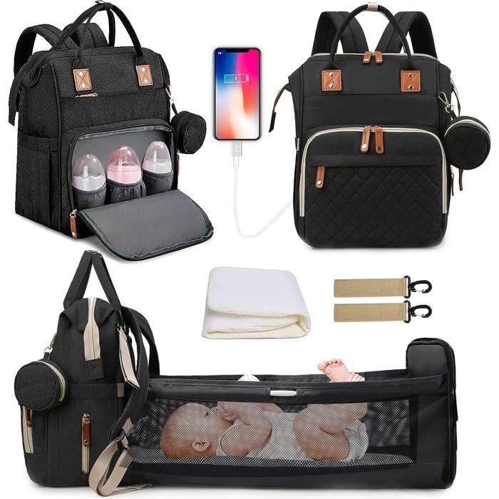 Towwoo Sacs à Dos à Langer, 3 en 1 Sac à Langer de Voyage Sacs à dos à langer Imperméable compartiment principal intérieur a 2 poches zippées et 4 poches élastiques. Sac à Langer Sac à Dos Towwoo Sac à Dos à Langer Pour Bébé, Sac De Voyage Avec Lit Thermomètre Frontal 🎒【Sac à Dos Grande Capacité 35L】Taille du lit pliant : 70 × 25 cm. Présentation du produit Towwoo Sacs à Dos à Langer, 3 en 1 Sac à Langer de Voyage Portable avec Lit Pliable, Grande Capacité Sacs à Langer pour bébé, Sa128 Towwoo Sac à Dos à Langer pour bébé, Sac de Voyage avec Lit de Bébé Portable, 35L Grande Capacité Sac de Maternité, Sac à Couches Multifonction avec 2 Sangles... Taille dépliée : 74 × 32 cm, peut être dépliée dans le lit pliant pour que le bébé dorme plus confortablement. Les nécessités quotidiennes du bébé peuvent être divisées en catégories, telles que les biberons, les vêtements, les serviettes, les couches, les tasses à eau, les mouchoirs en papier, les bidons de lait en poudre, les jouets ; les téléphones portables, les portefeuilles, les clés, les i-Pad et autres nécessités quotidiennes de la mère peuvent également être placés. Équipé d'une poche à monnaie avec fermeture éclair, vous pouvez garder une petite monnaie en cas d'urgence, ou vous pouvez l'accrocher au sac à dos et l'emporter avec vous. Vous pouvez remplacer les bébés extérieurs par des stations pop-up et des moustiquaires respirants (propres, sûrs et pratiques). 🎒【Tissu Imperméable et Port de Chargement USB】Le sac à langer pour bébé est fabriqué en tissu oxford imperméable avec des fils tissés fins et une fermeture à glissière double sens lisse, résistante aux rayures et durable. 🎒【Sac à Couches pour Bébé Amélioré】Ce Sac à Dos à Couches Nouveau-né avec Lit Pliant comprend une station de changement de vitesse pliable + net moustique + pad urine + jouets + crochet de poussette + portefeuille de pièces + câble de données.