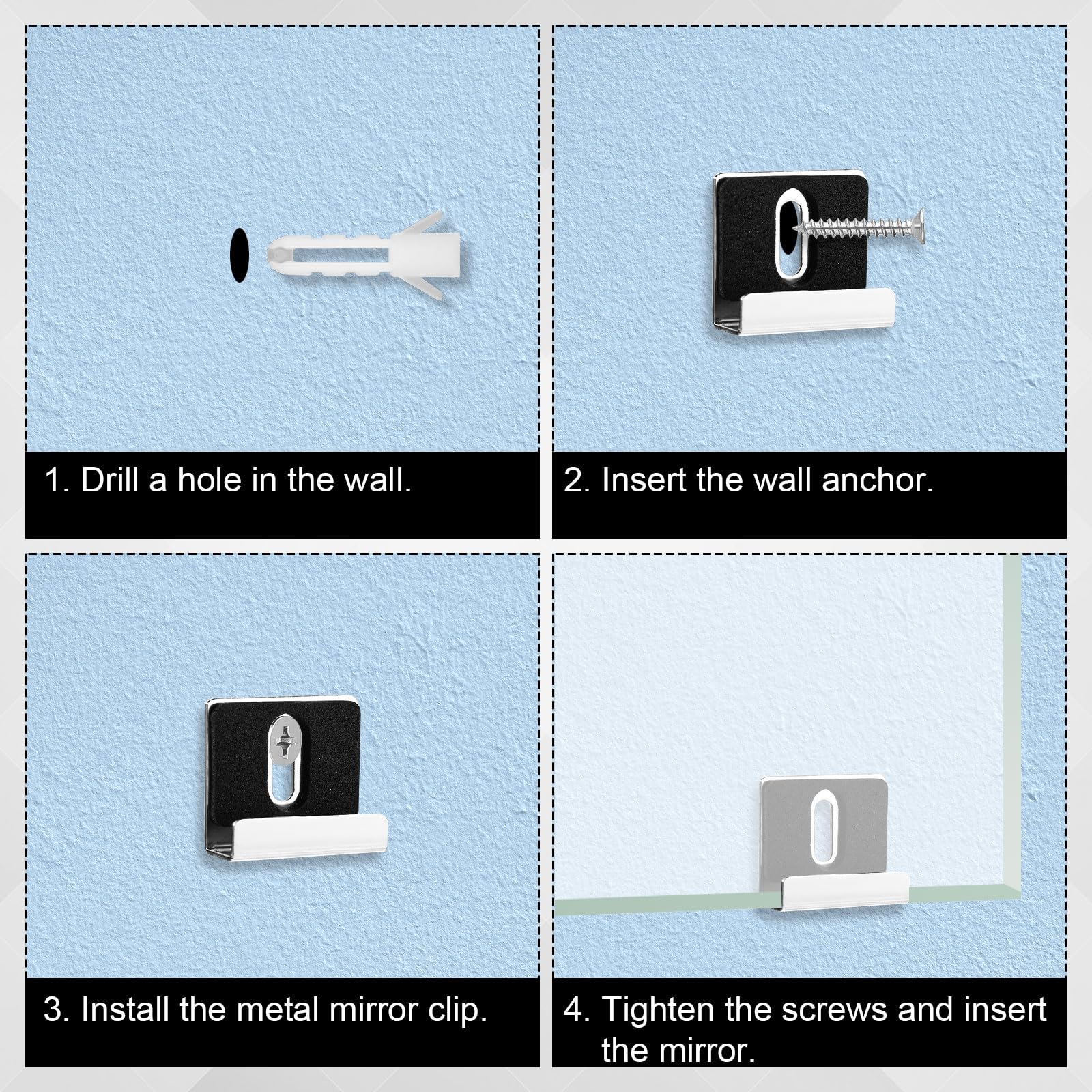 Fixation Murale Pour Miroir Lasuroa Support Miroir Mural En Métal 8pcs, Kit De Support De Pour Cadres Tableaux Aussi Miroir mural en métal multicolore 74,9x7x66 cm Tonis | Maisons du Monde KIT DE MONTAGE mural miroir sans cadre polyvalent matériel robuste en... Matériau de qualité: en matériau en acier de bonne qualité, notre support de miroir sans cadre a une forte dureté, un moulage en une seule pièce, une forte capacité de charge, qui est fiable et durable. Facile à installer: il suffit de 3 étapes à installer, très facile. Deuxième étape, insérez la vis dans l'ancre d'extension en plastique et serrez-la. En raison de la différence entre les moniteurs, il peut y avoir une légère différence de couleur. Troisième étape, installez des cintres de miroir, puis intégrez le miroir. Il convient à de nombreux scénarios, tels que la salle de bain, le bureau, le sous-sol, etc. Grand cadeau: les clips de cintres miroirs sont d'excellents cadeaux pour la famille, les amis et les voisins qui ont récemment changé de résidence. 4Pcs Attache Miroir Mural, Support Miroir,Clips Pince de Miroir Lourd...
